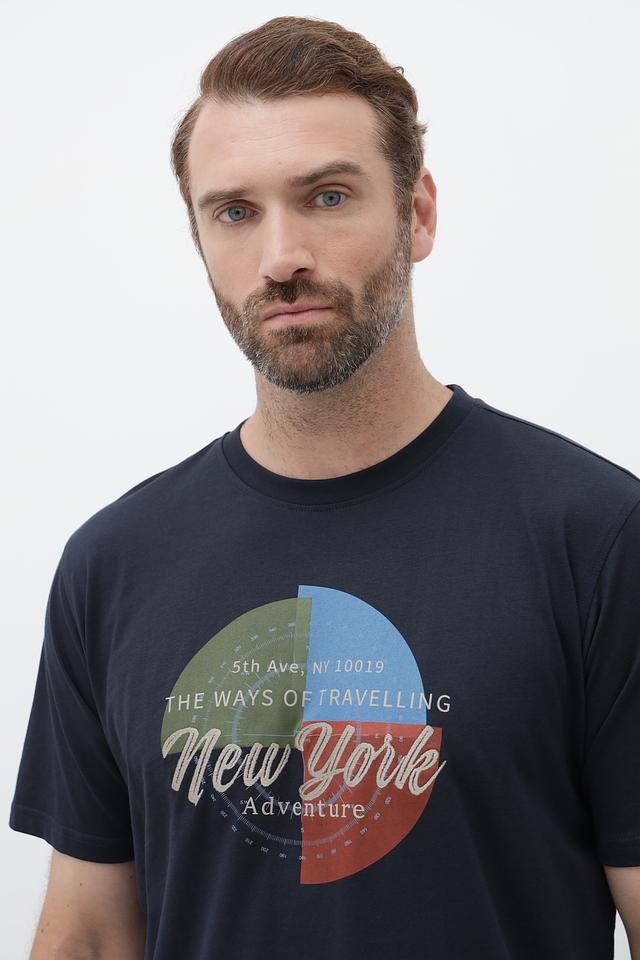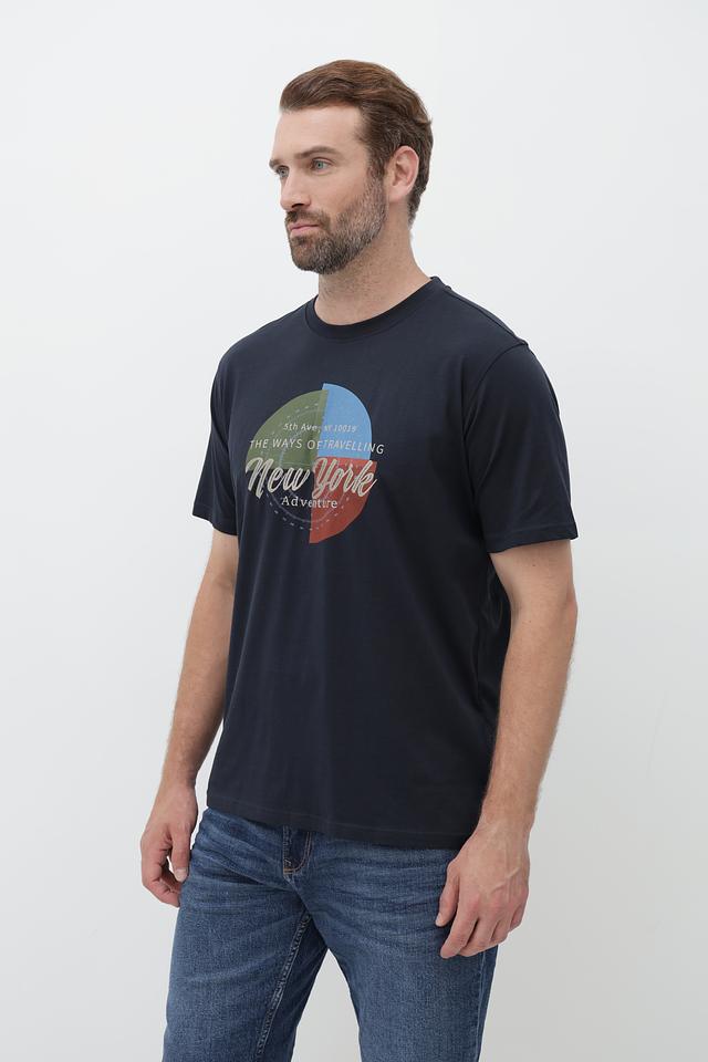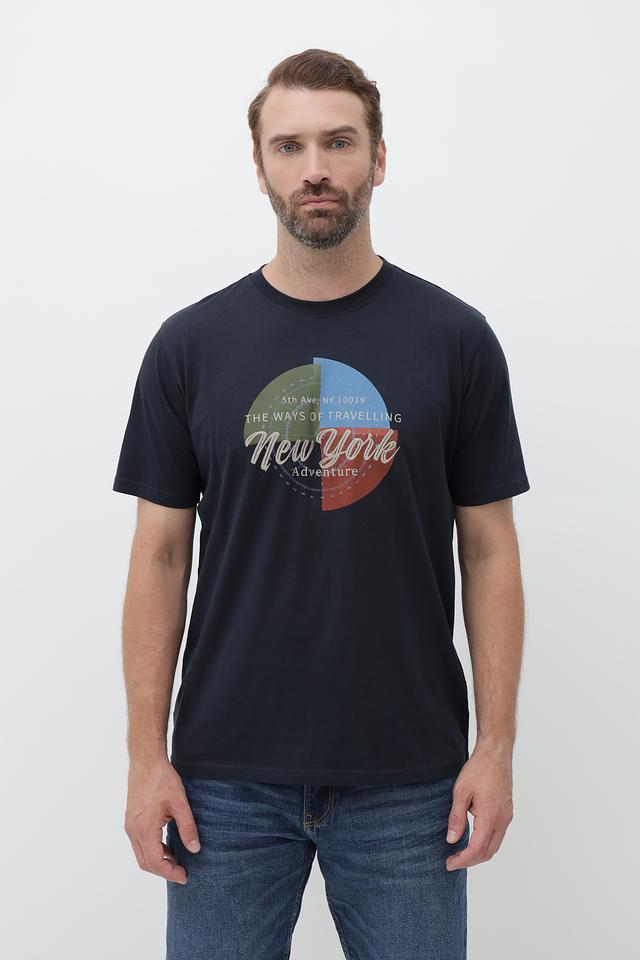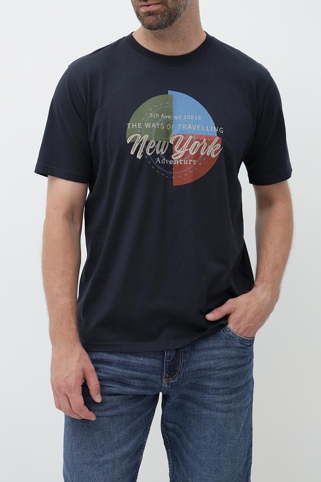 Мужская футболка Casa Moda тёмно-синего цвета с ярким принтом "New York". Изготовлена из 100% хлопка, обеспечивающего комфорт и воздухопроницаемость. Стильный дизайн и удобный крой делают эту футболку отличным выбором для повседневной носки. Состав: хлопок 100%