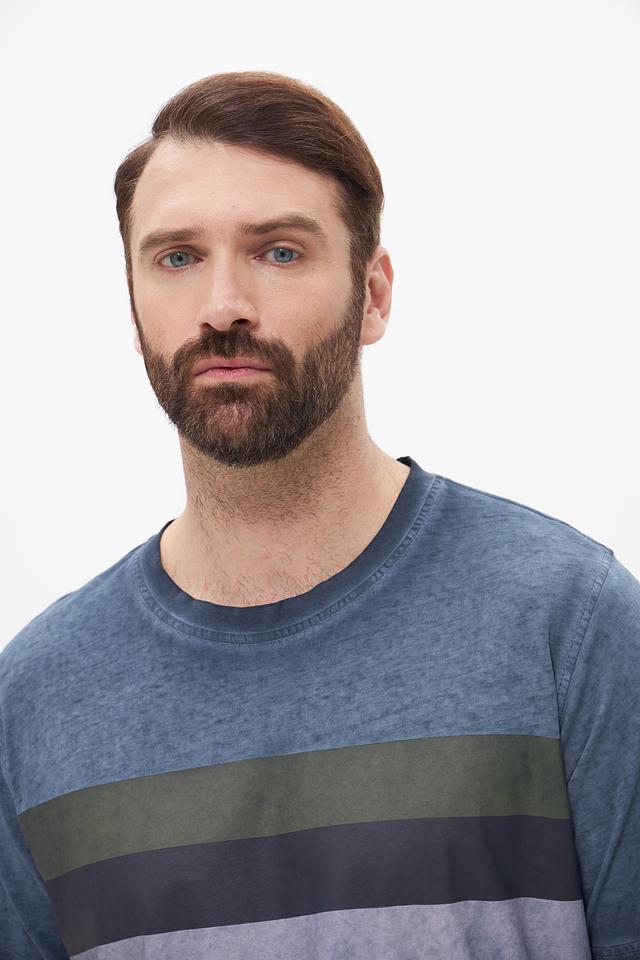 Эта мужская футболка от Casa Moda станет отличным дополнением к вашему образу. Футболка выполнена в сером цвете с горизонтальными полосами оливкового, серого и темно-синего оттенков, что придает ей современный и динамичный вид.