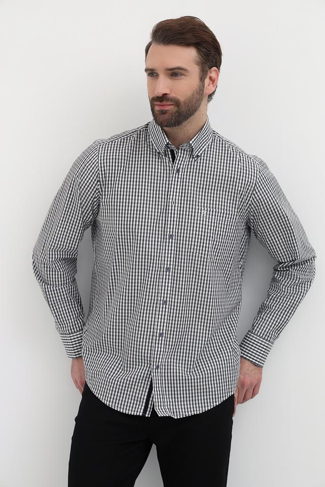 Мужская рубашка Casa Moda чёрно-белого цвета с классическим кроем и длинным рукавом. Изготовлена из 100% хлопка, обеспечивающего комфорт и воздухопроницаемость. Идеальный выбор для создания стильного повседневного образа. Состав: хлопок 100%