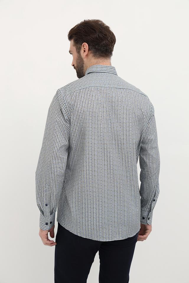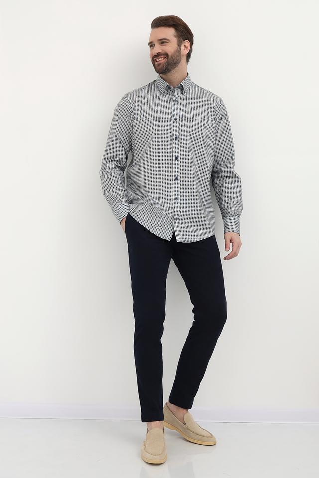 Мужская рубашка Casa Moda светло-серого цвета с мелким синим рисунком в клетку. Изготовлена из 100% хлопка, обеспечивающего комфорт и воздухопроницаемость. Состав: хлопок 100%