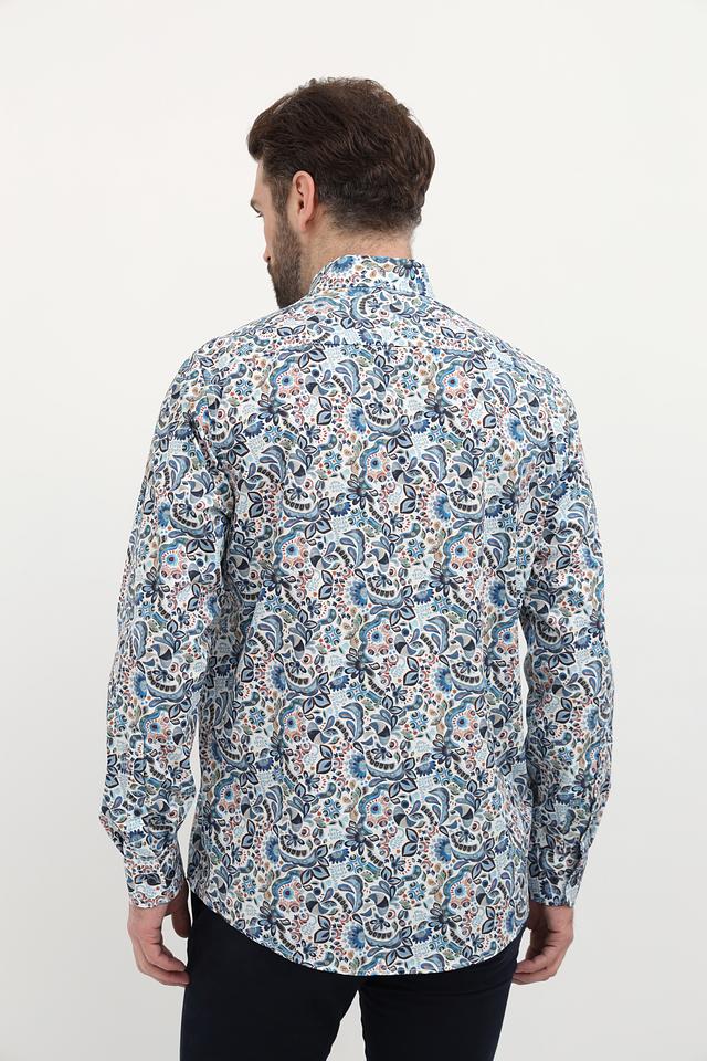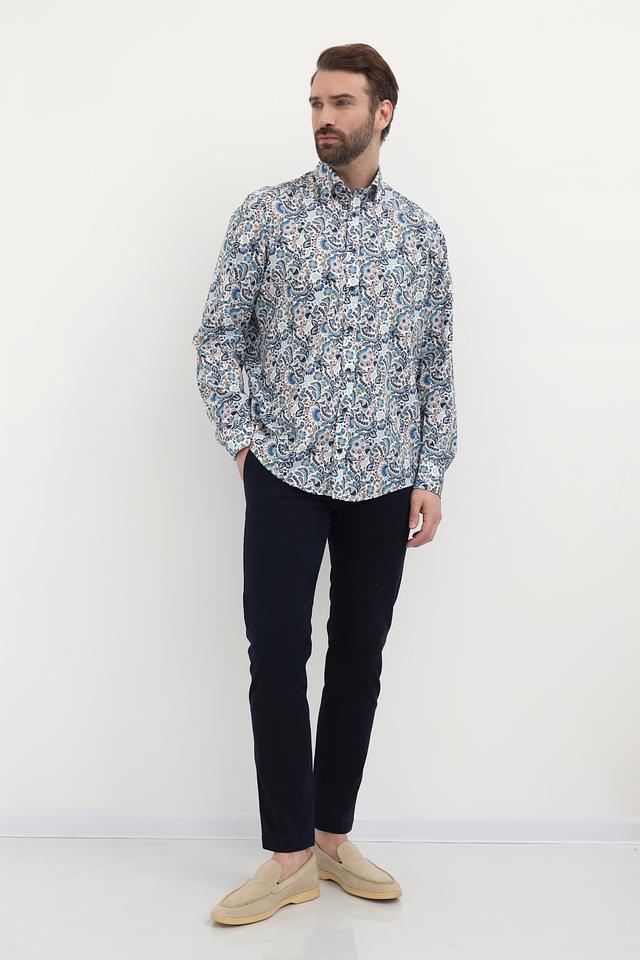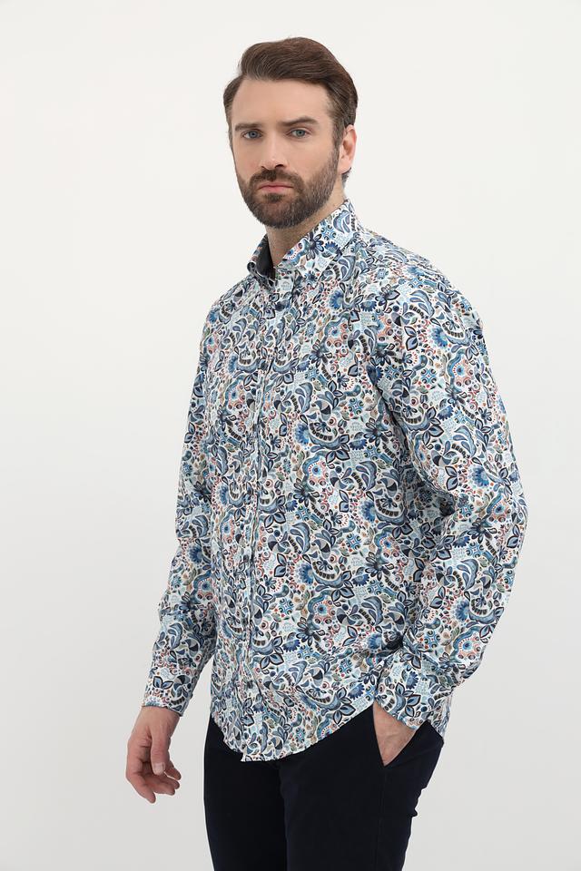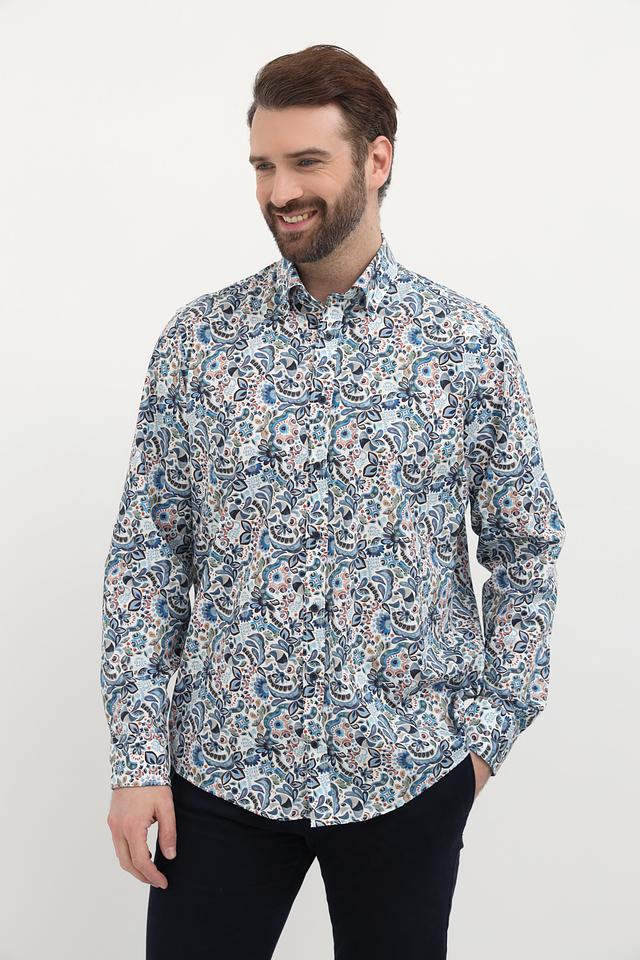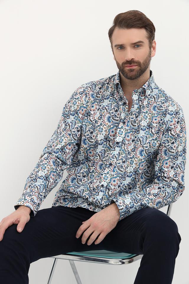Мужская рубашка Casa Moda голубого цвета с оригинальным цветочным узором. Изготовлена из 100% хлопка, обеспечивающего комфорт и воздухопроницаемость. Состав: хлопок 100%
