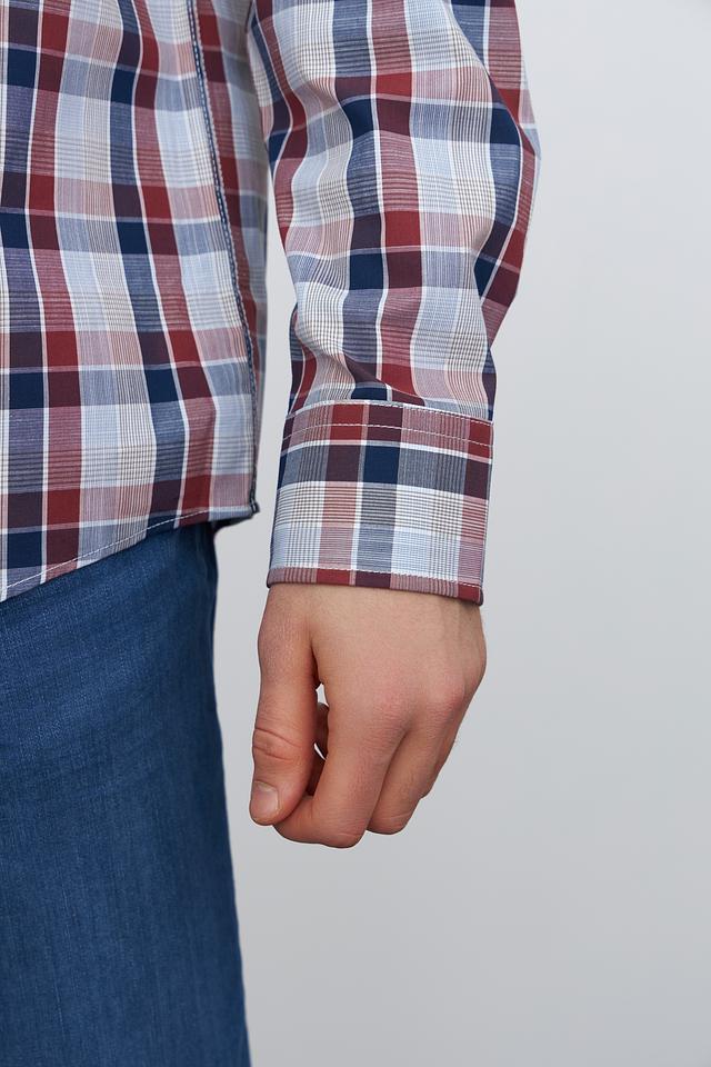 Основной цвет рубашки – сочетание синего, красного и белого, образующее эффектный клетчатый узор. Рубашка выполнена из высококачественного 100% хлопка, что обеспечивает приятные тактильные ощущения и хорошую воздухопроницаемость.