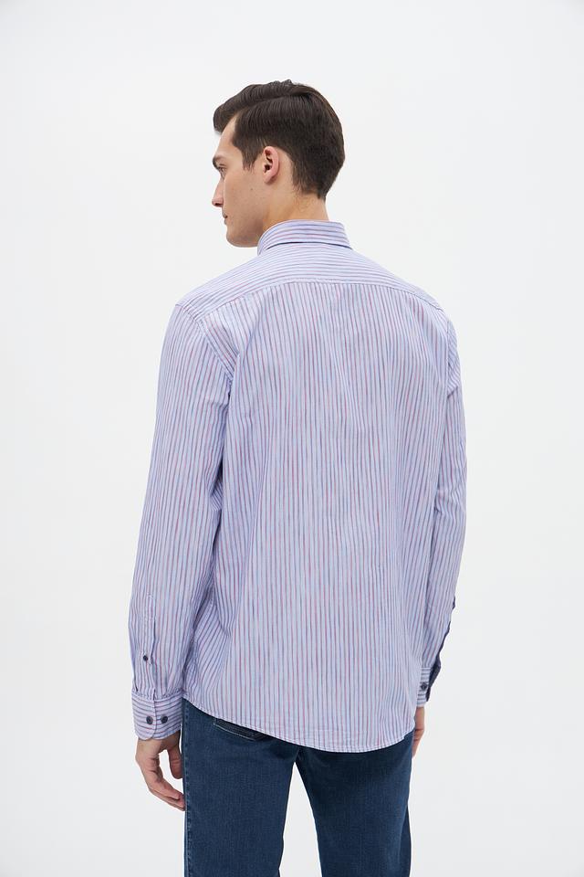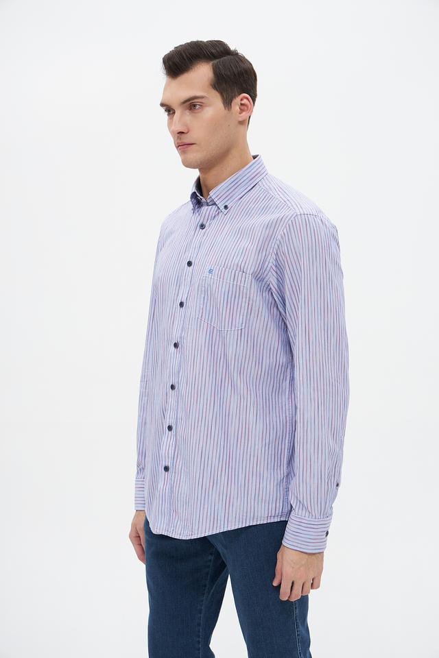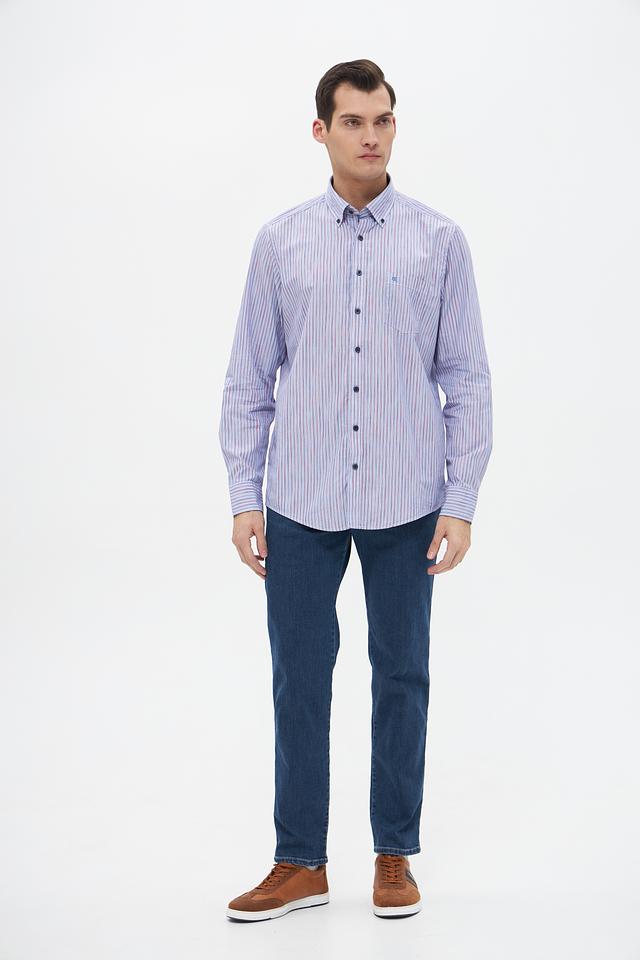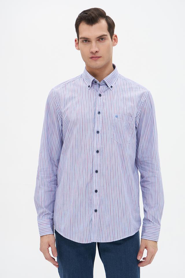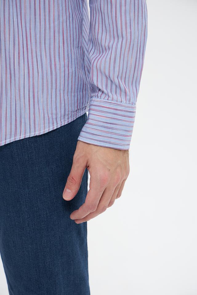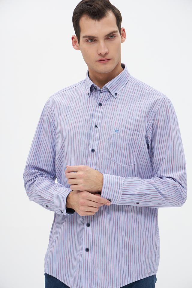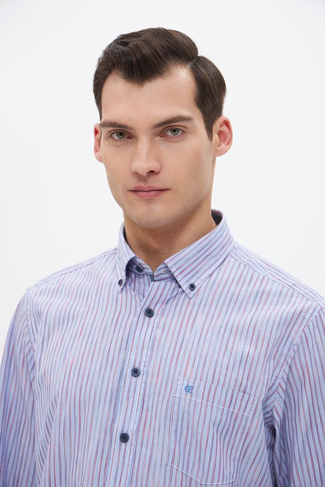 Мужская рубашка от Casa Moda – это стильное и практичное решение для создания повседневного образа. Рубашка выполнена в приятной голубой цветовой гамме с вертикальной полоской, сочетающей в себе оттенки голубого, белого и красного.