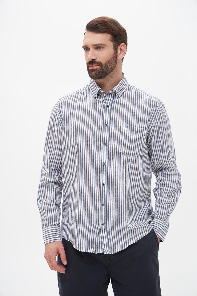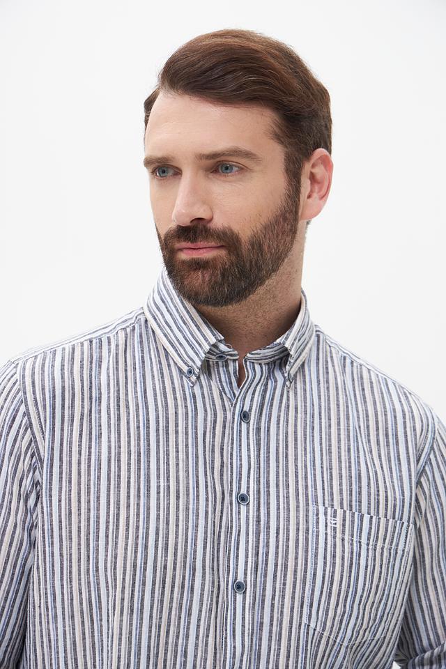 Мужская рубашка Casa Moda синего цвета в полоску – это стильное и комфортное решение для повседневного образа. Изготовлена из натуральных материалов, обеспечивающих приятные ощущения и воздухопроницаемость. Состав: лен 55%, хлопок 45%