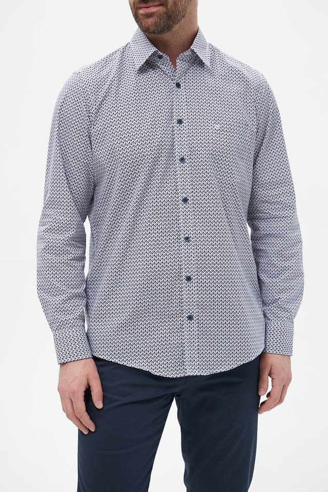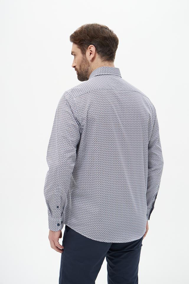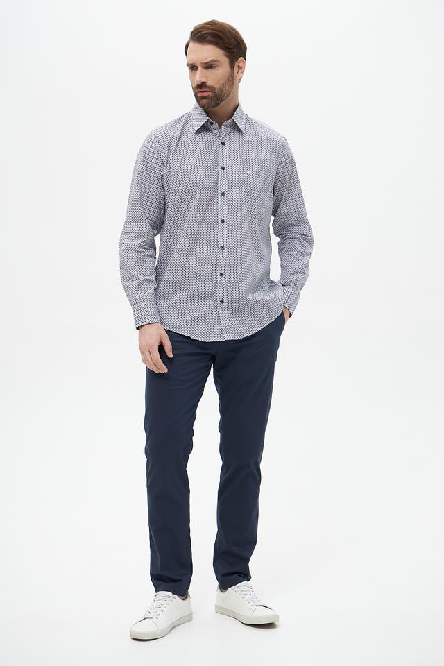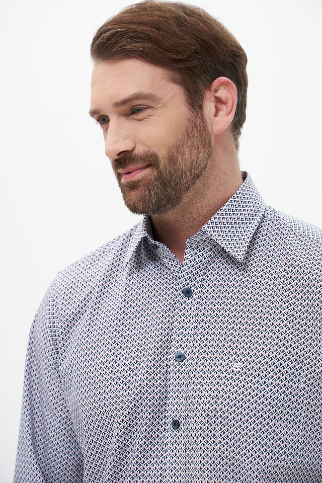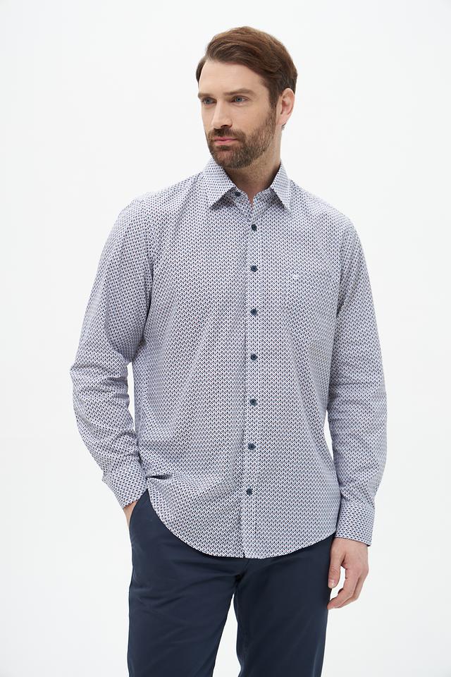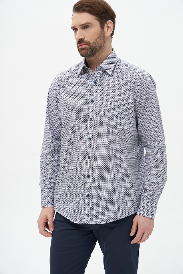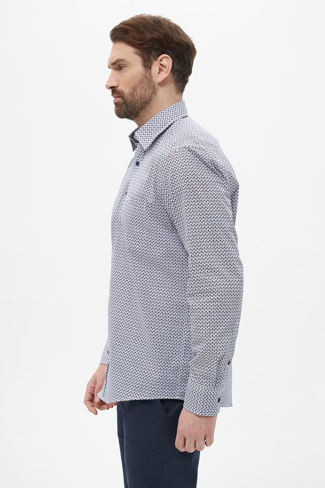 Мужская рубашка Casa Moda голубого цвета с геометрическим принтом. Изготовлена из 100% хлопка, обеспечивающего комфорт и воздухопроницаемость. Состав: хлопок 100%