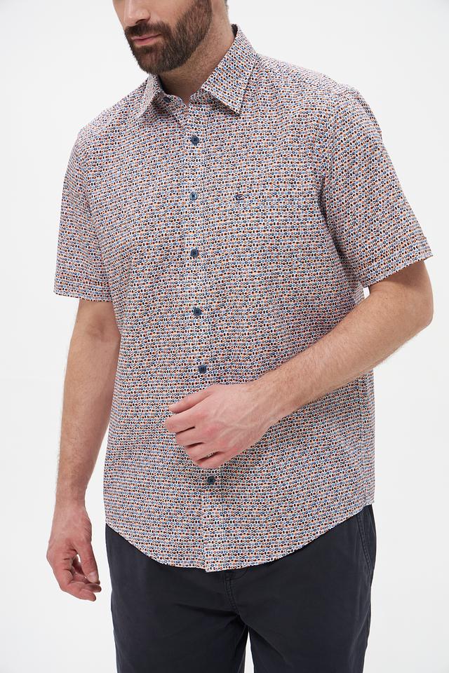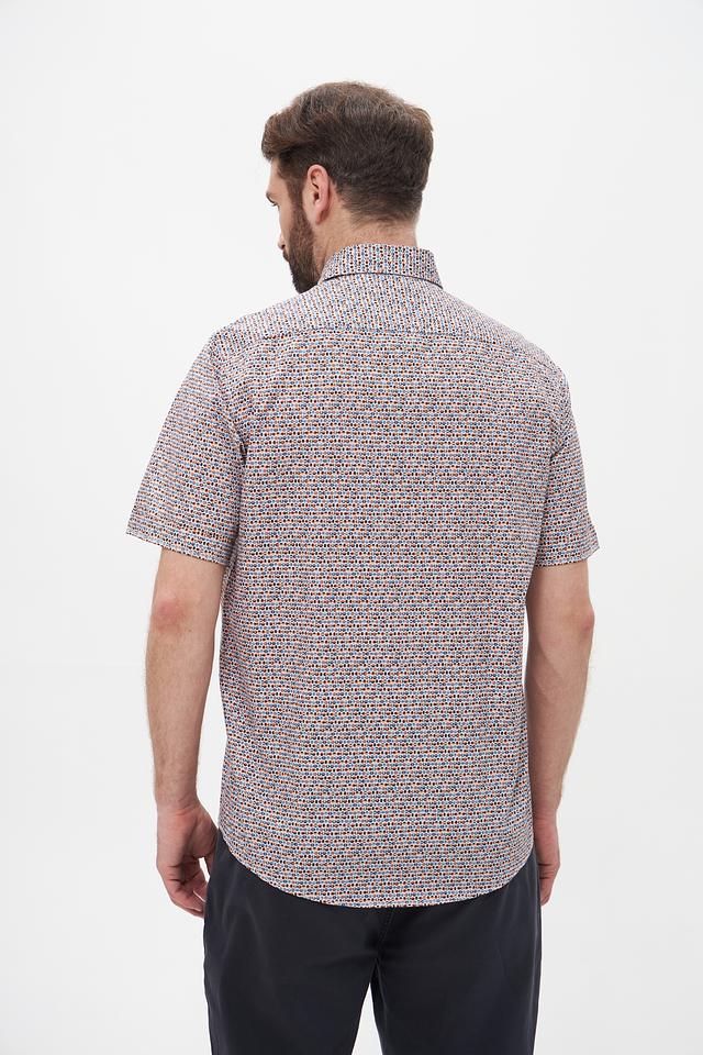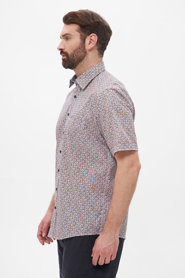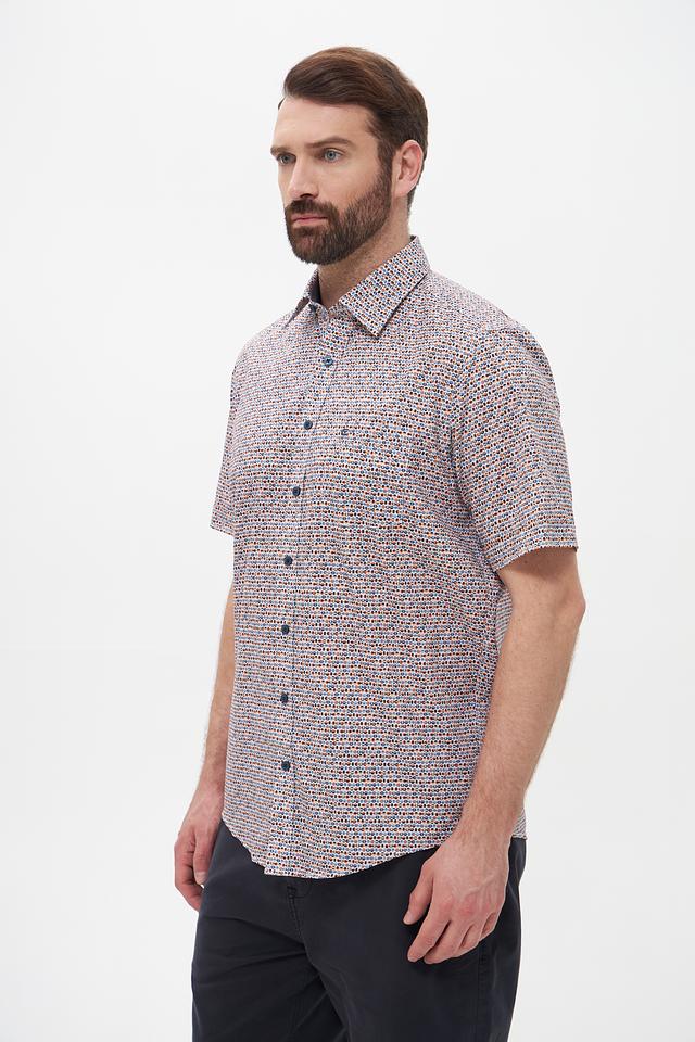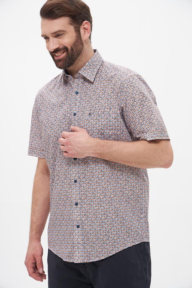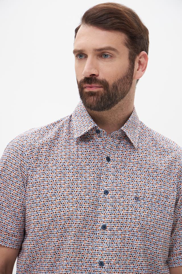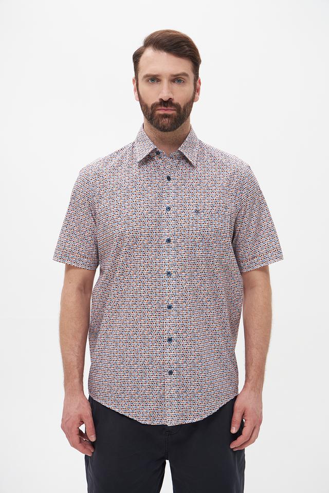 Мужская рубашка Casa Moda с коротким рукавом выполнена в светлых тонах с оригинальным клетчатым принтом. Изготовлена из 100% хлопка, обеспечивающего комфорт и воздухопроницаемость. Состав: хлопок 100%