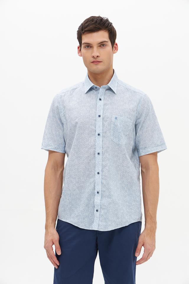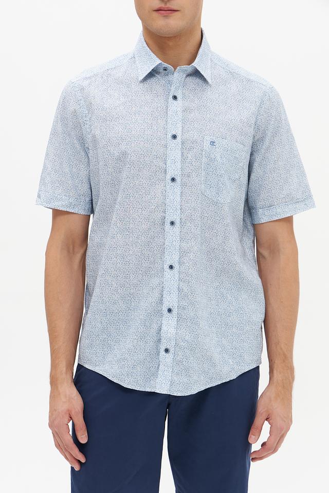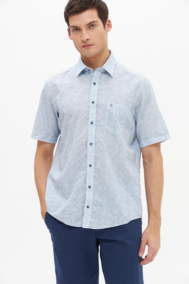 Мужская рубашка Casa Moda голубого цвета с коротким рукавом, выполнена из лёгкой ткани с мелким цветочным принтом. Идеальный выбор для создания стильного и комфортного образа в тёплую погоду. Состав: лен 55%, хлопок 45%