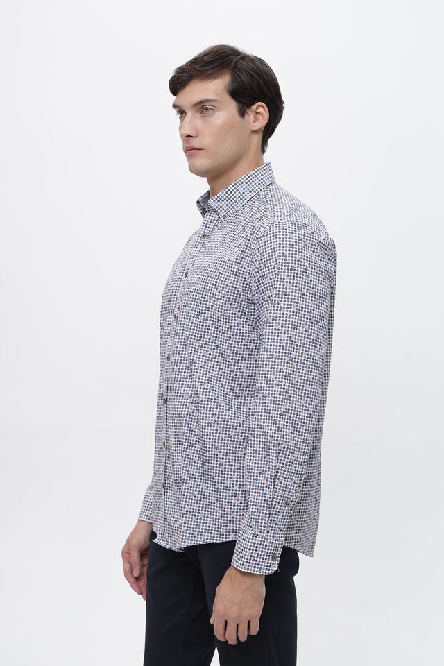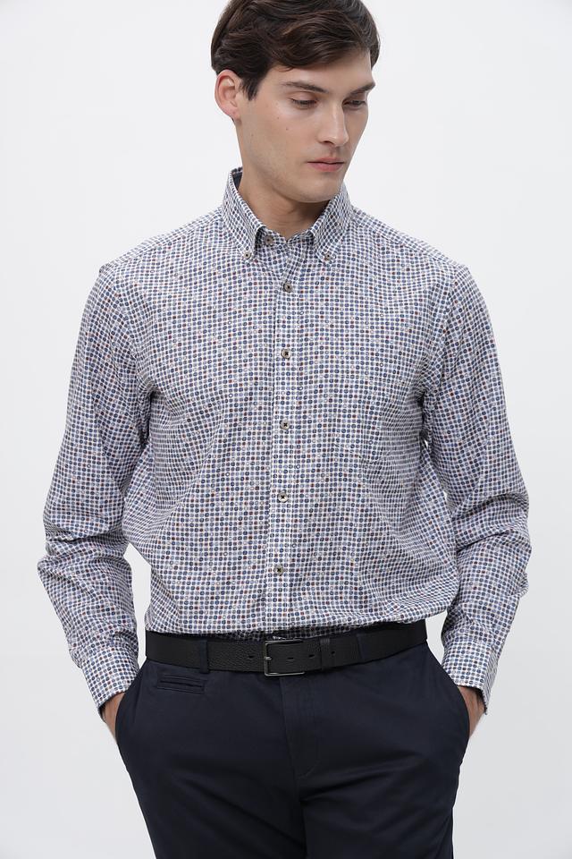 Модель имеет классический крой с длинными рукавами и воротником на пуговицах. Рубашка выполнена из 100% хлопка, что обеспечивает комфорт при носке и позволяет коже дышать. Ткань приятна на ощупь и проста в уходе.