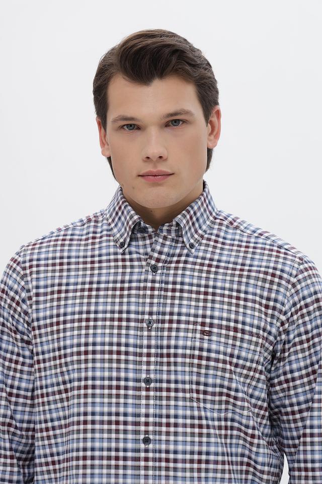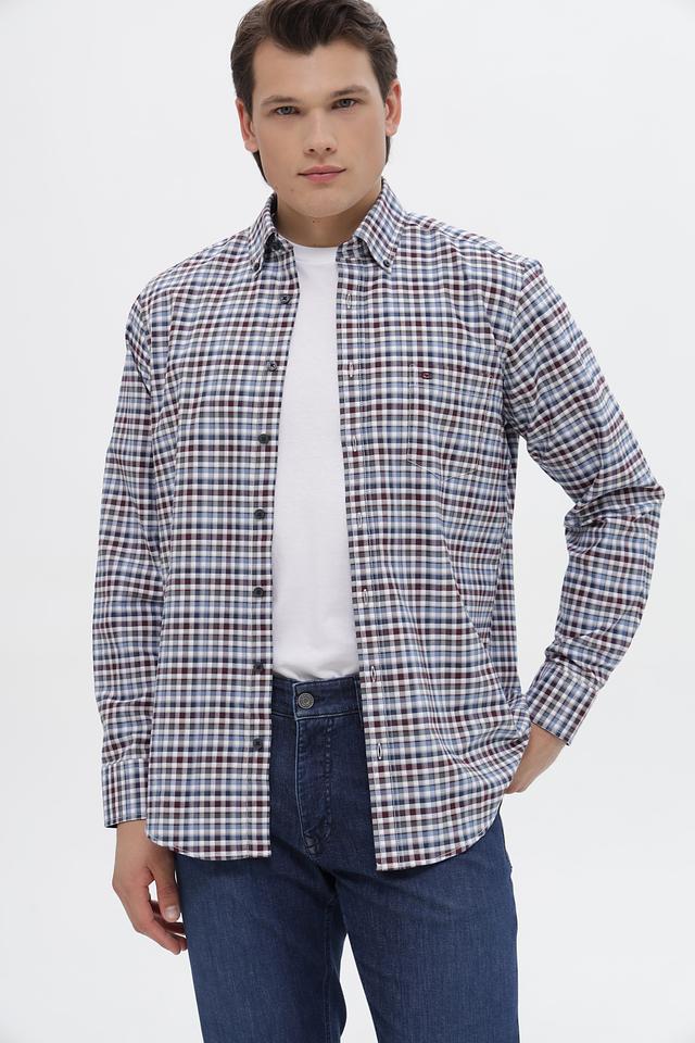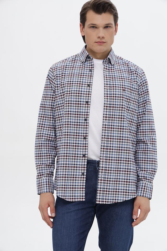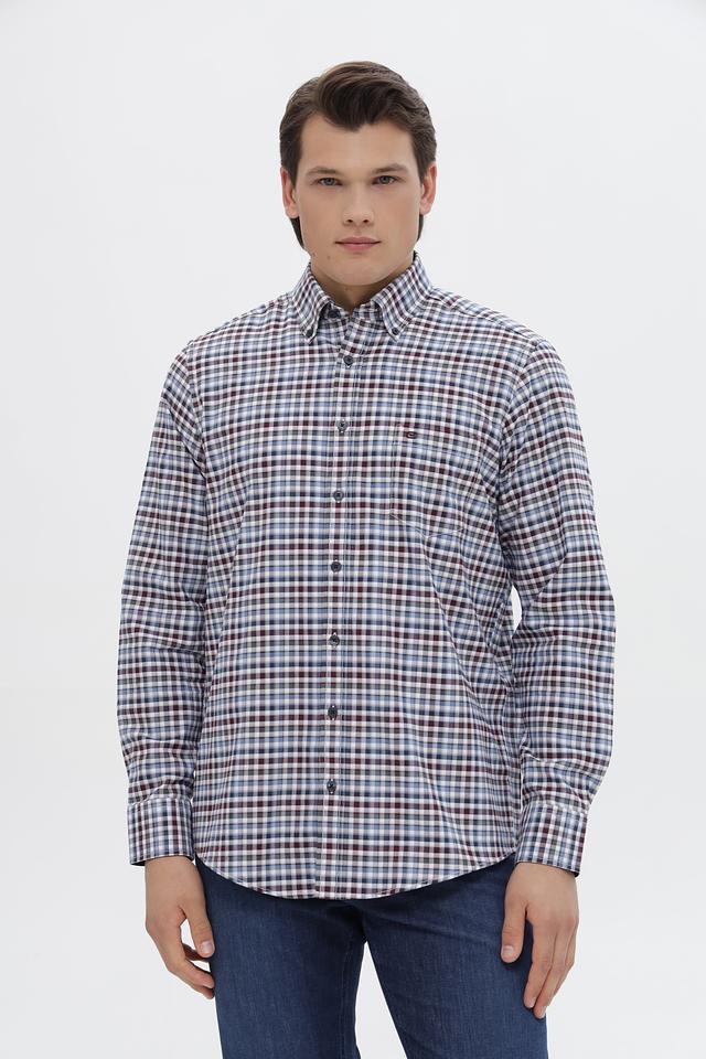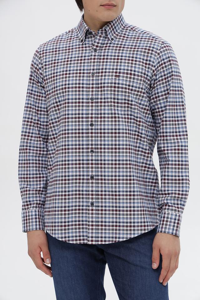 Эта рубашка от Casa Moda станет отличным дополнением к вашему гардеробу. Выполнена в голубой цветовой гамме с клетчатым рисунком, сочетающим в себе оттенки коричневого, белого и синего.