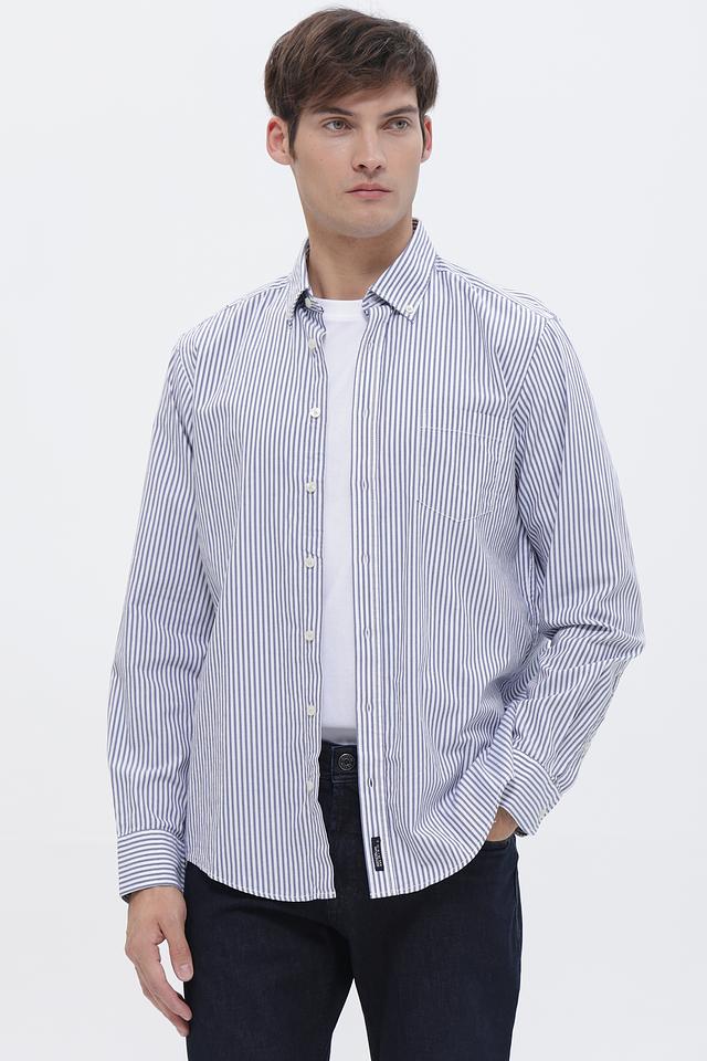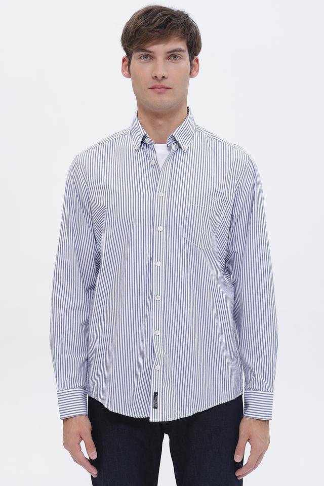 Мужская рубашка Casa Moda синего цвета в классическую полоску. Изготовлена из 100% хлопка, обеспечивающего комфорт и воздухопроницаемость. Отличный выбор для создания повседневного образа. Состав: хлопок 100%