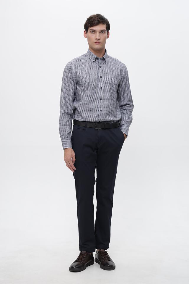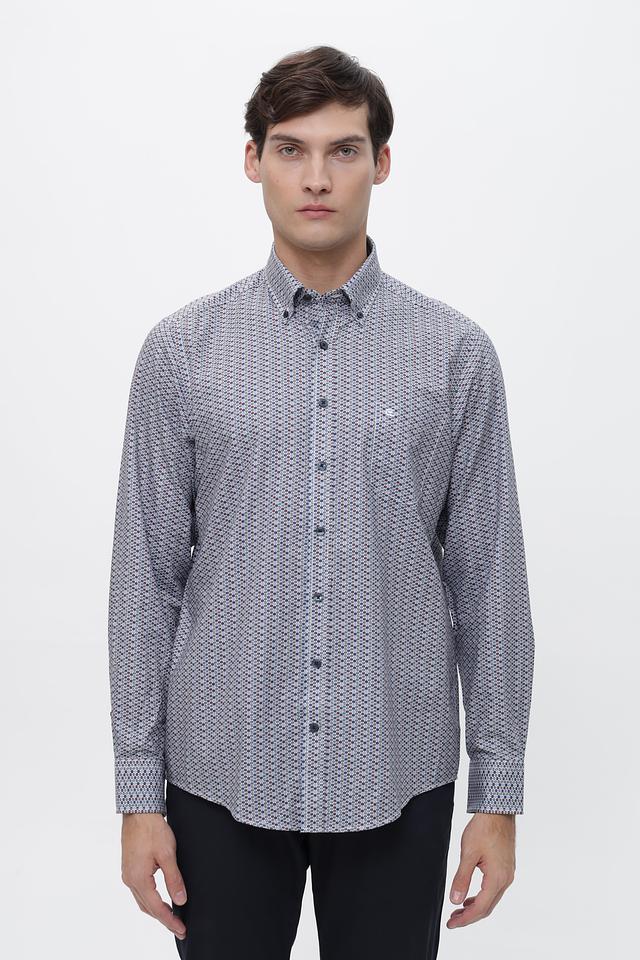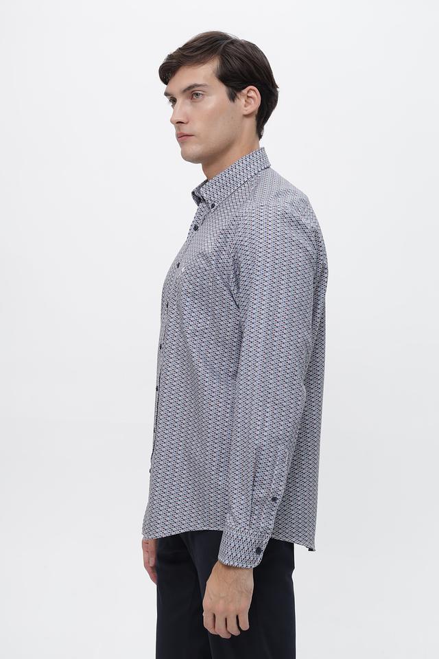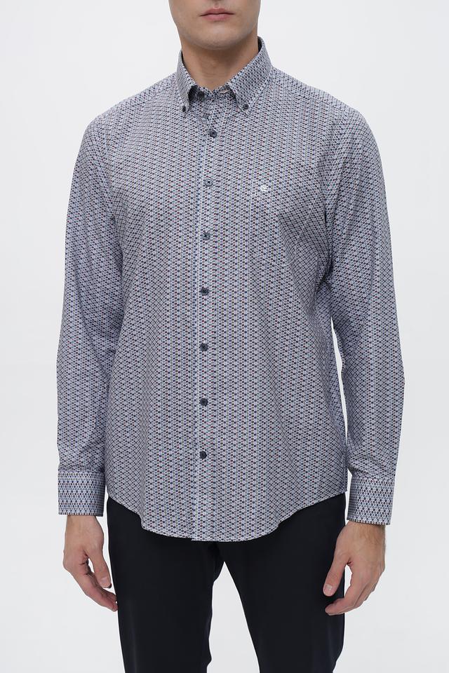 Мужская рубашка Casa Moda серого цвета с геометрическим принтом. Изготовлена из 100% хлопка, обеспечивающего комфорт и воздухопроницаемость. Состав: хлопок 100%
