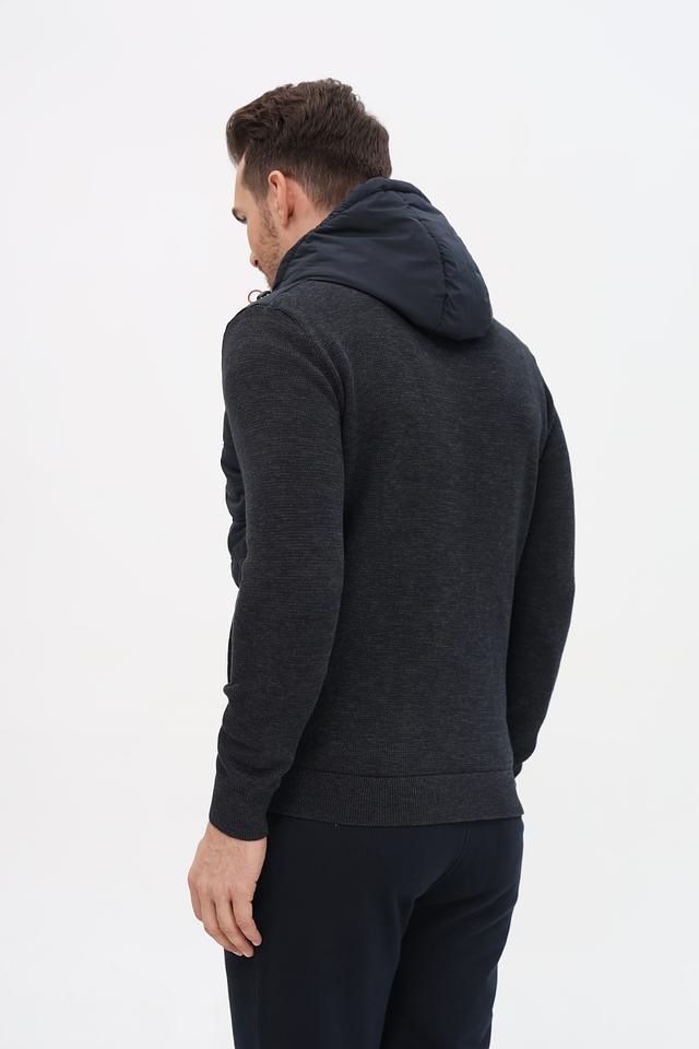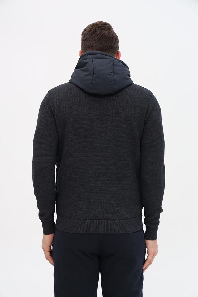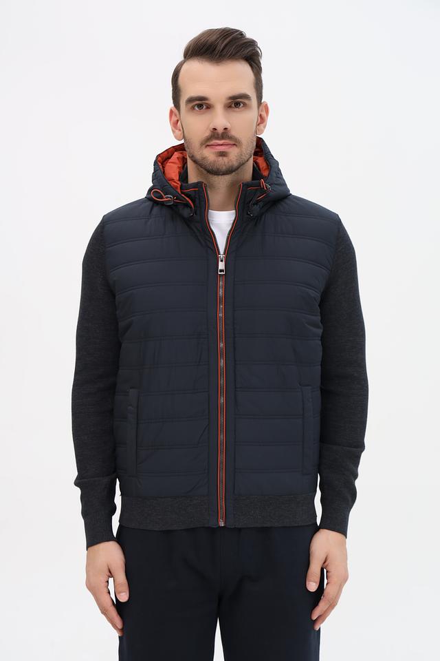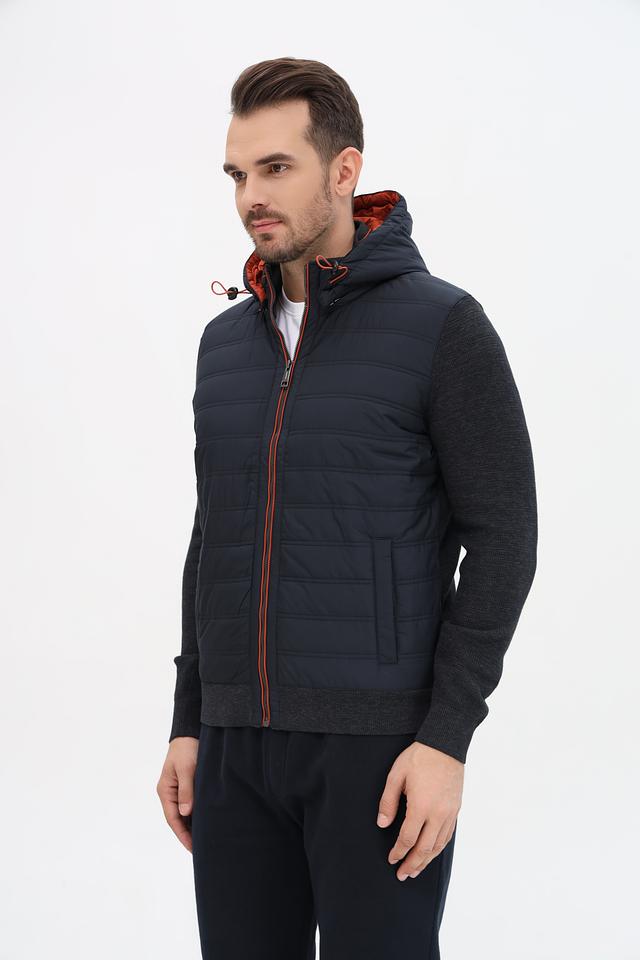 Мужская куртка-кардиган Casa Moda тёмно-синего цвета с комбинированной текстурой и капюшоном. Изготовлена из 100% хлопка, обеспечивающего комфорт и удобство в носке. Состав: хлопок 100%