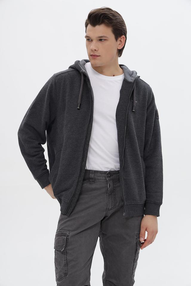 Серый кардиган Casa Moda на молнии – это удобная и практичная вещь для создания повседневных образов. Модель выполнена из мягкого трикотажа и дополнена капюшоном с кулиской. Удобно для прохладной погоды. Состав: хлопок 60%, полиэстер 40%