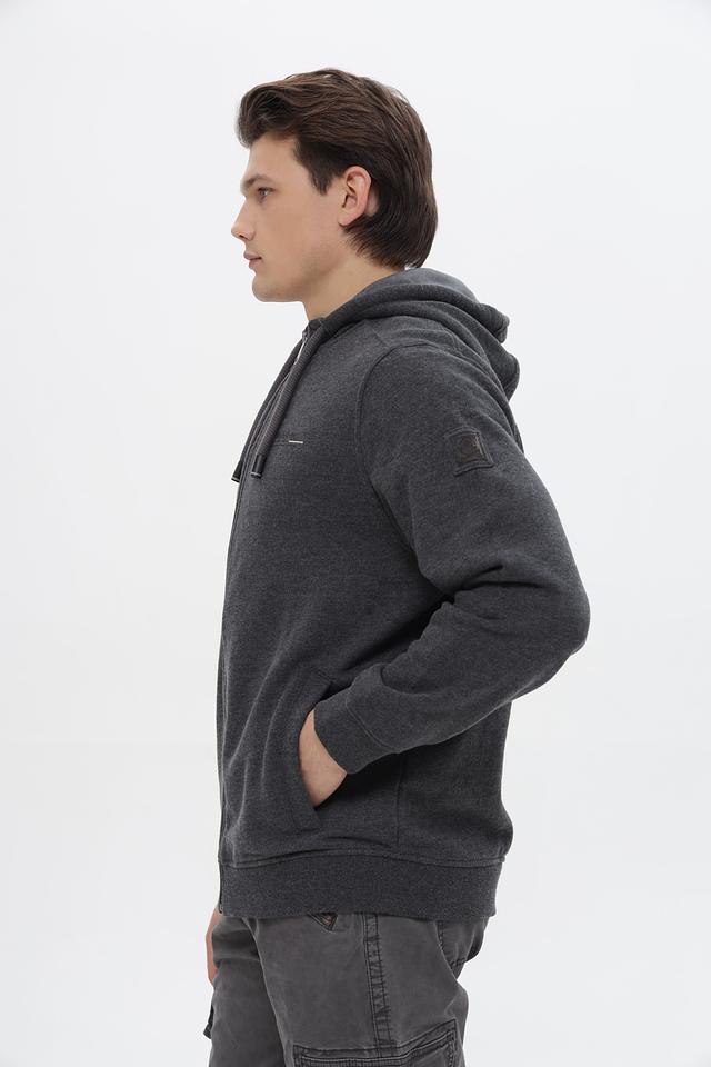 Кардиган застегивается на молнию, имеет капюшон с регулируемой кулиской и два удобных кармана. Прямой крой и эластичные манжеты рукавов обеспечивают свободу движений.