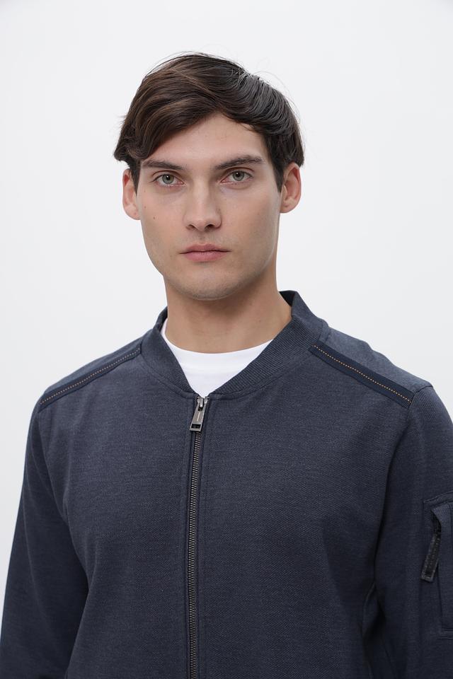 Модель имеет застежку-молнию, воротник-стойку и манжеты и нижний край из плотной резинки. Куртка оснащена двумя боковыми карманами на молнии и накладным карманом на рукаве с декоративной деталью.