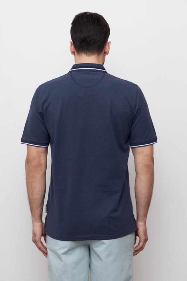 Тёмно-синее поло от Casa Moda с белой полоской на воротнике и рукавах – стильный и комфортный выбор для повседневной носки. Изготовлено из мягкого хлопка с добавлением эластана для удобства и сохранения формы. Состав: хлопок 95%, эластан 5%