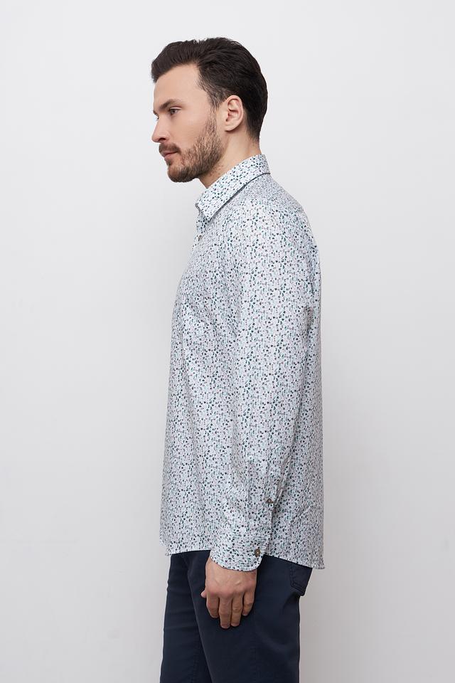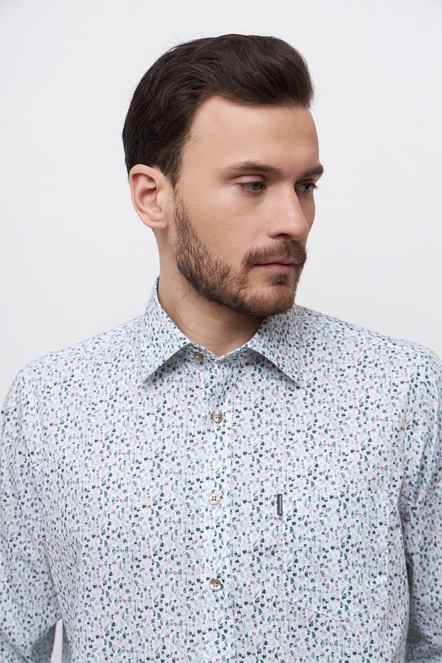 Рубашка имеет классический крой с длинными рукавами и стандартным воротником. Застежка на пуговицы обеспечивает удобство и надежность. Модель идеально подходит для создания как повседневных, так и более формальных образов.