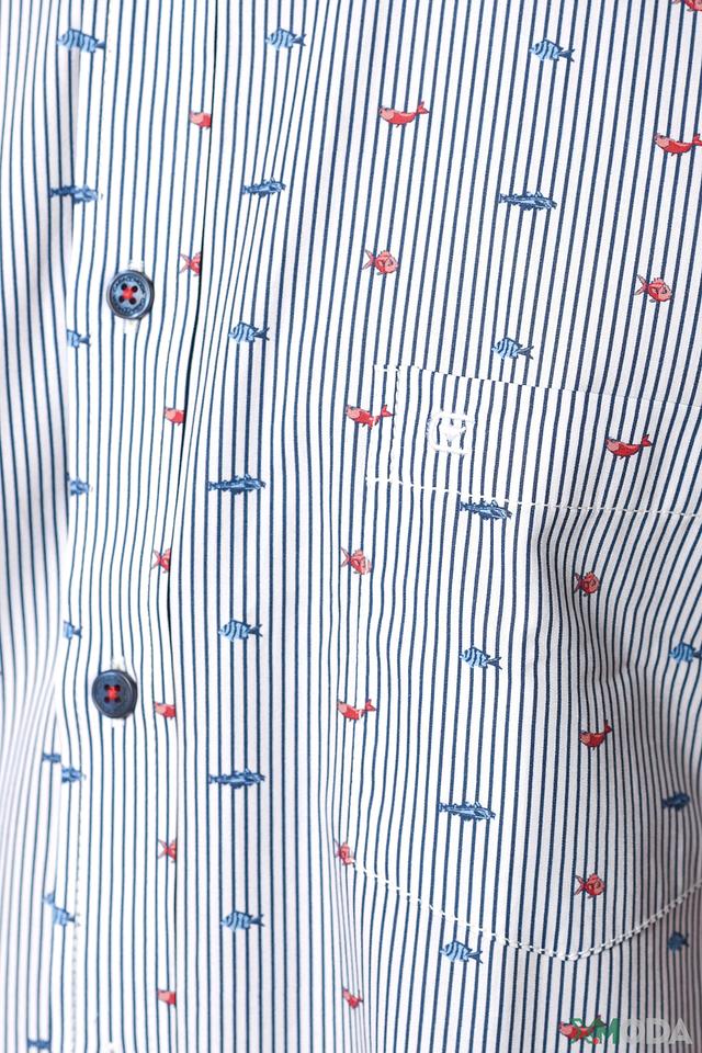 Эта стильная рубашка от Casa Moda станет отличным дополнением к вашему летнему гардеробу. Выполнена в светло-голубой цветовой гамме с вертикальной полоской и небольшим рисунком в виде рыбок и ракушек.