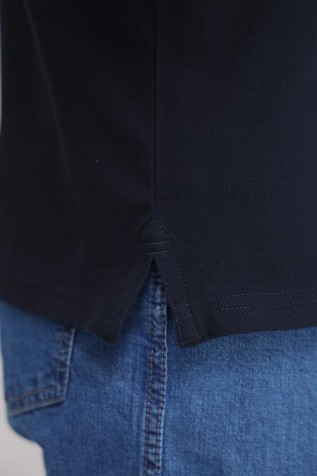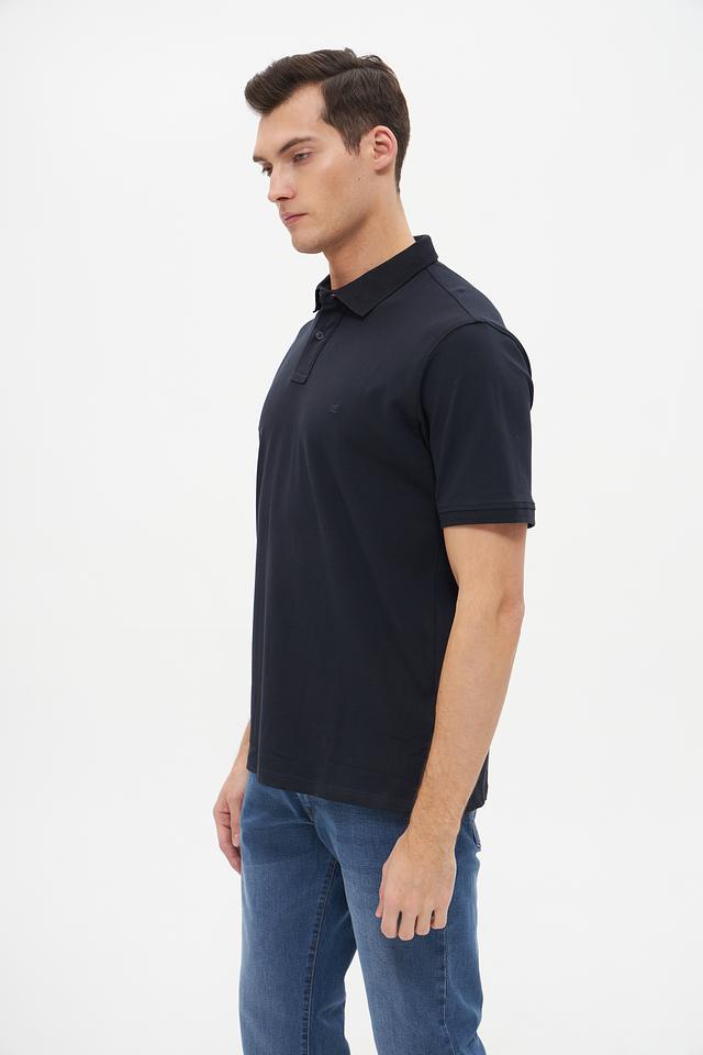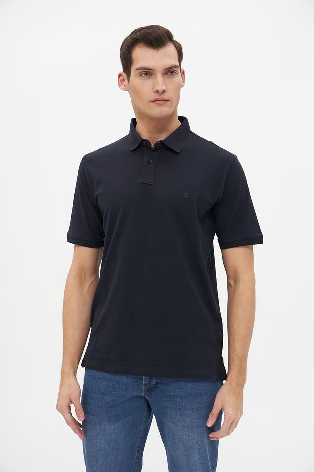 Поло имеет короткий рукав, классический воротник и застёжку на пуговицах. Тёмно-синий цвет делает его универсальным и подходящим для различных случаев – от повседневной носки до деловых встреч.
