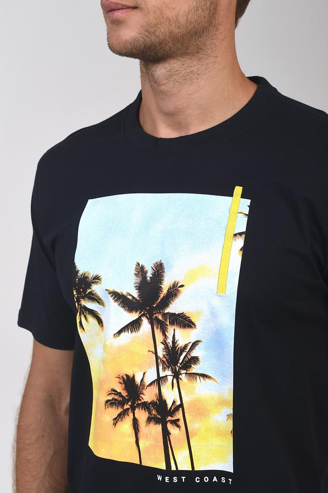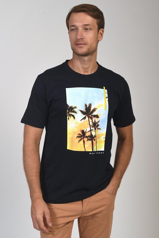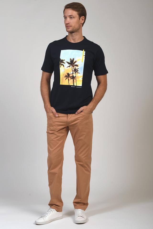 Мужская футболка Casa Moda чёрного цвета с ярким принтом в виде пальм и заката. Изготовлена из 100% хлопка, обеспечивающего комфорт и воздухопроницаемость. Стильный дизайн и свободный крой делают эту футболку отличным выбором для повседневной носки. Состав: хлопок 100%