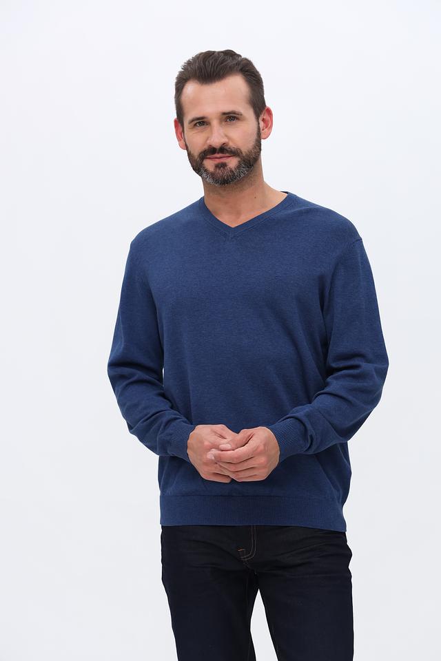 Синий джемпер Casa Moda с V-образным вырезом – это стильная и комфортная модель на каждый день. Изготовлен из 100% хлопка, обеспечивающего мягкость и приятные ощущения при носке. Классический крой делает этот джемпер универсальным элементом гардероба. Состав: хлопок 100%
