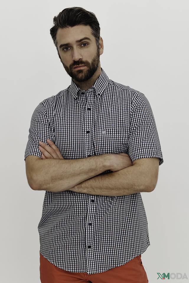 Рубашка имеет короткий рукав, что делает ее идеальным выбором для теплой погоды. Воротник рубашки выполнен в классическом стиле, а застежка на пуговицах обеспечивает удобство ношения.