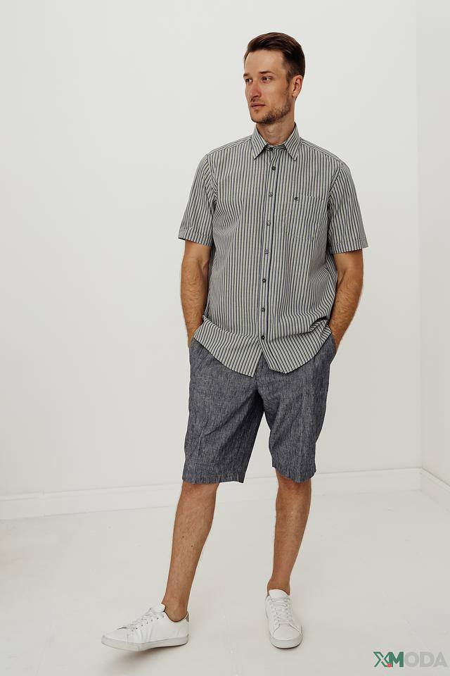 Мужская рубашка Casa Moda синего цвета с коротким рукавом и вертикальной полоской. Изготовлена из 100% хлопка, обеспечивающего комфорт и воздухопроницаемость. Отличный выбор для создания стильного повседневного образа. Состав: хлопок 100%