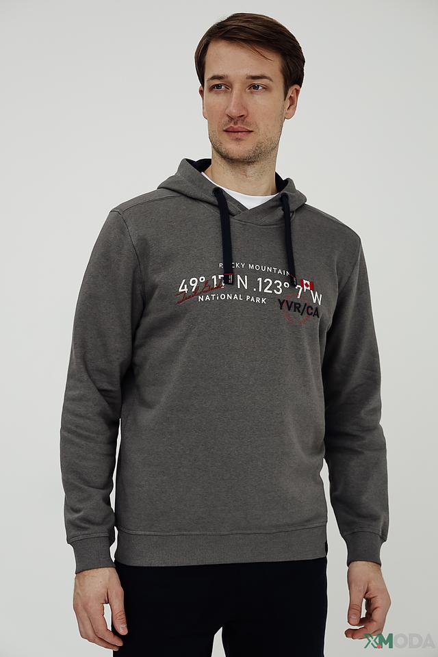 Мужская толстовка от Casa Moda – это комфорт и стиль в одном изделии. Толстовка выполнена в сером цвете и украшена ярким принтом с изображением гор и географических координат, что придает ей индивидуальность.