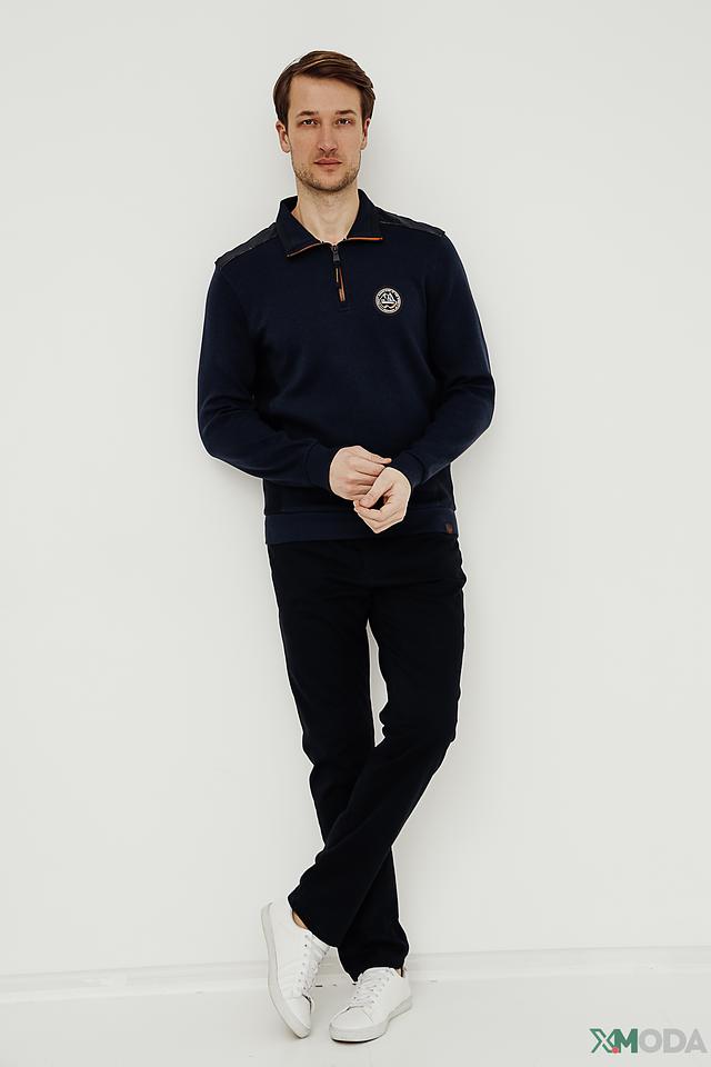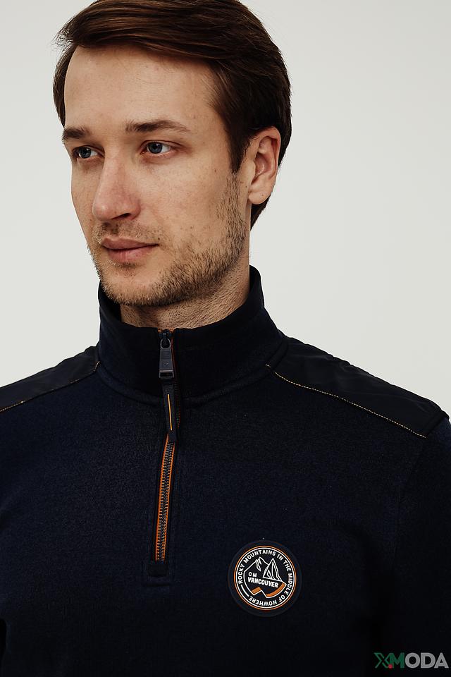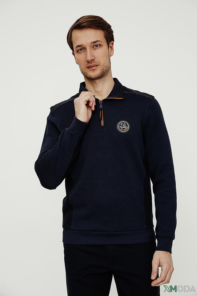 Мужской джемпер Casa Moda темно-синего цвета с воротником-стойкой и молнией. Изготовлен из хлопка с добавлением полиэстера для комфорта и долговечности. Отличается стильным дизайном с декоративной нашивкой. Состав: хлопок 88%, полиэстер 12%