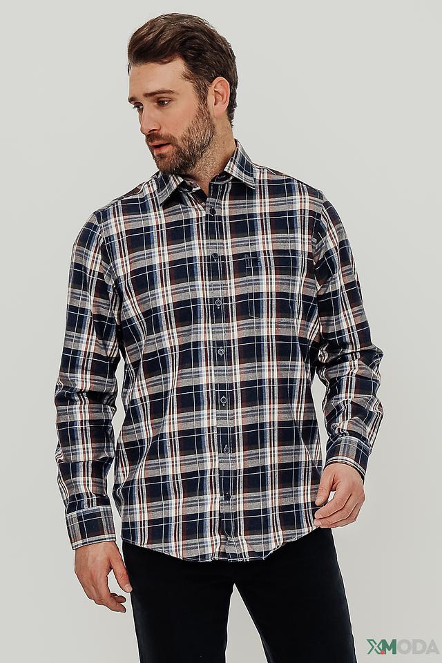 Эта рубашка от Casa Moda станет отличным дополнением к вашему гардеробу. Выполнена в классическом крое с длинными рукавами и традиционным воротником. Основной цвет рубашки – синий, а рисунок представляет собой клетку, выполненную в сочетании синих, белых и коричневых оттенков.