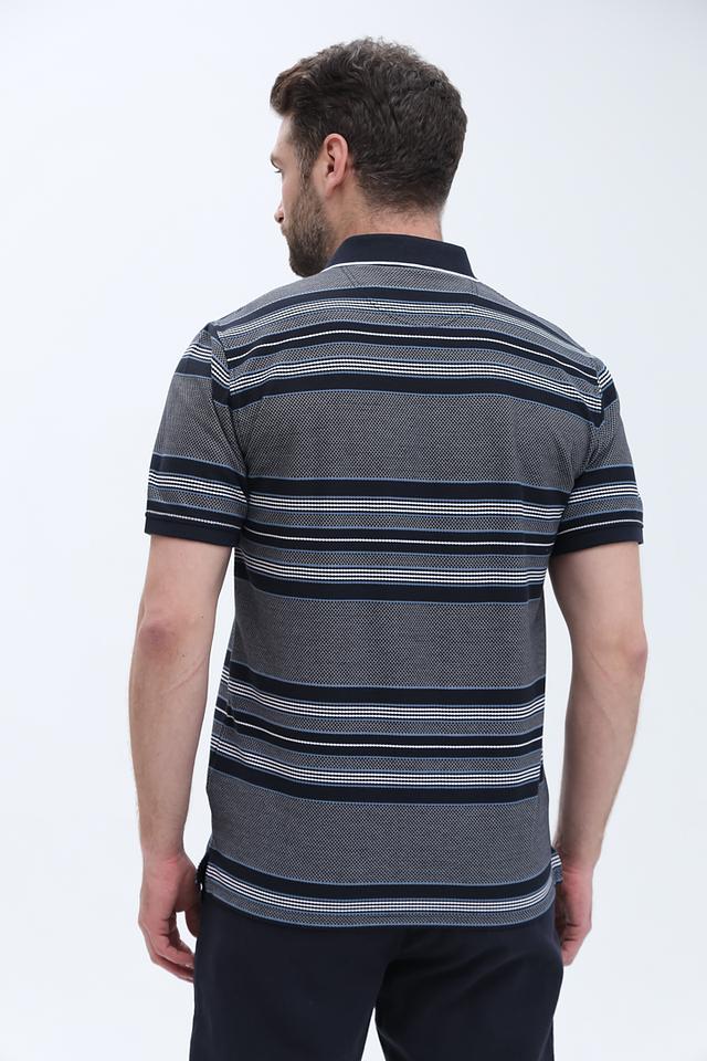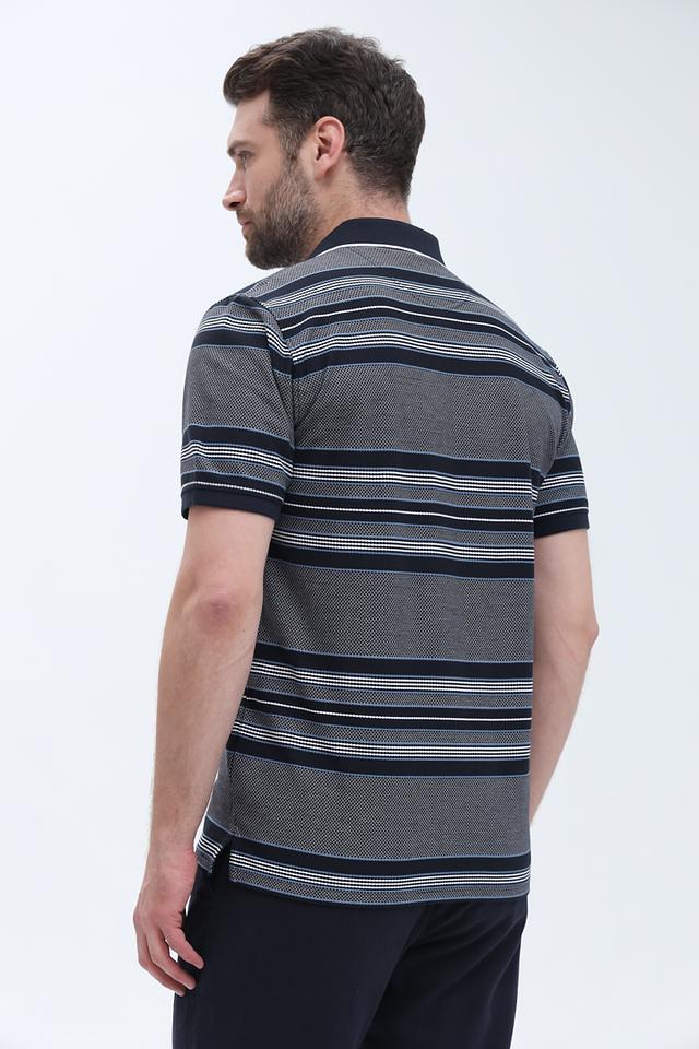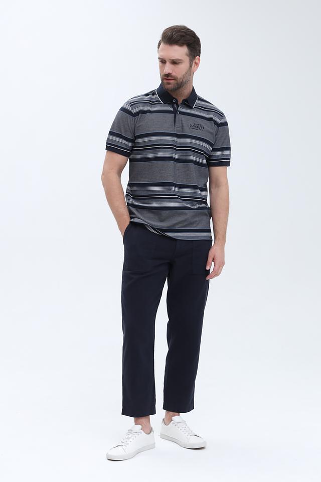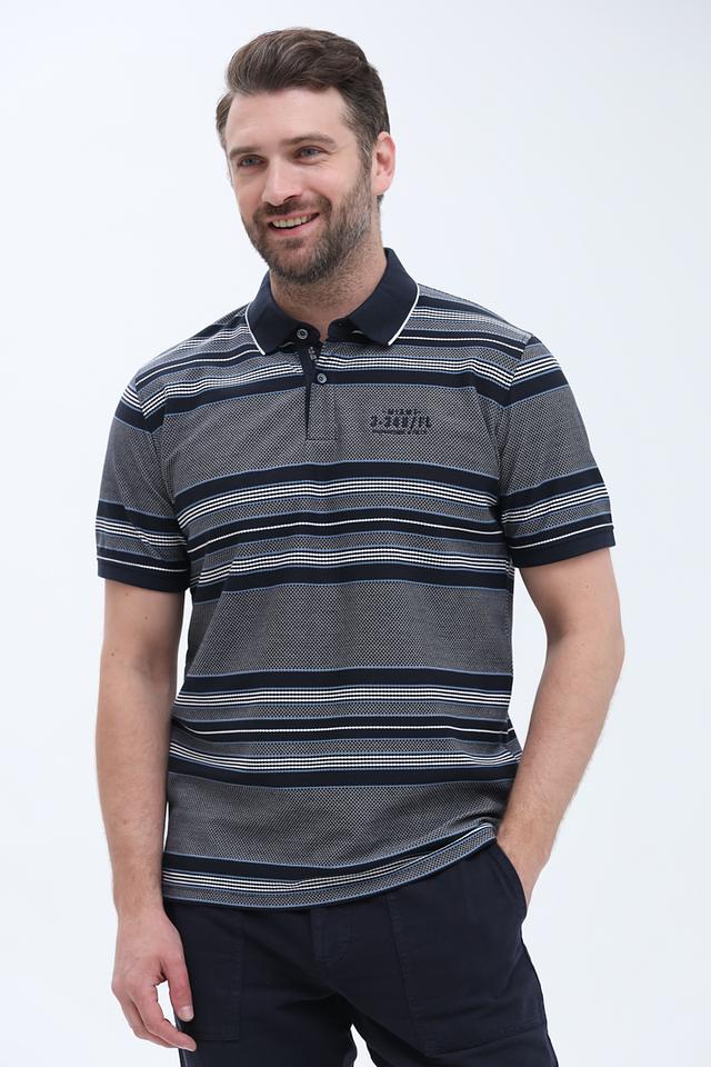 Это мужское поло от бренда Casa Moda – отличный выбор для создания повседневного образа. Поло выполнено в сочетании синего и серого цветов с выразительным полосатым рисунком.