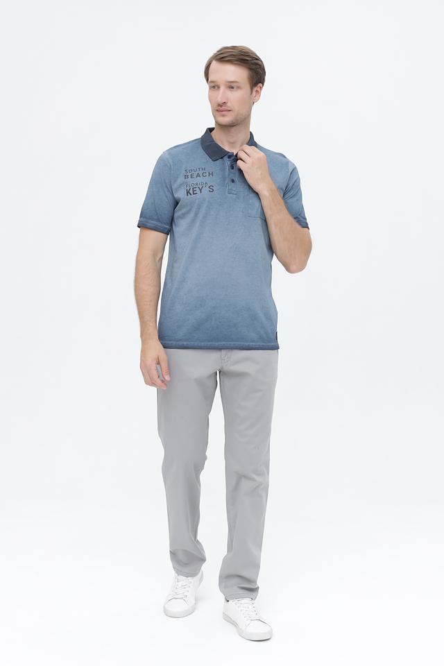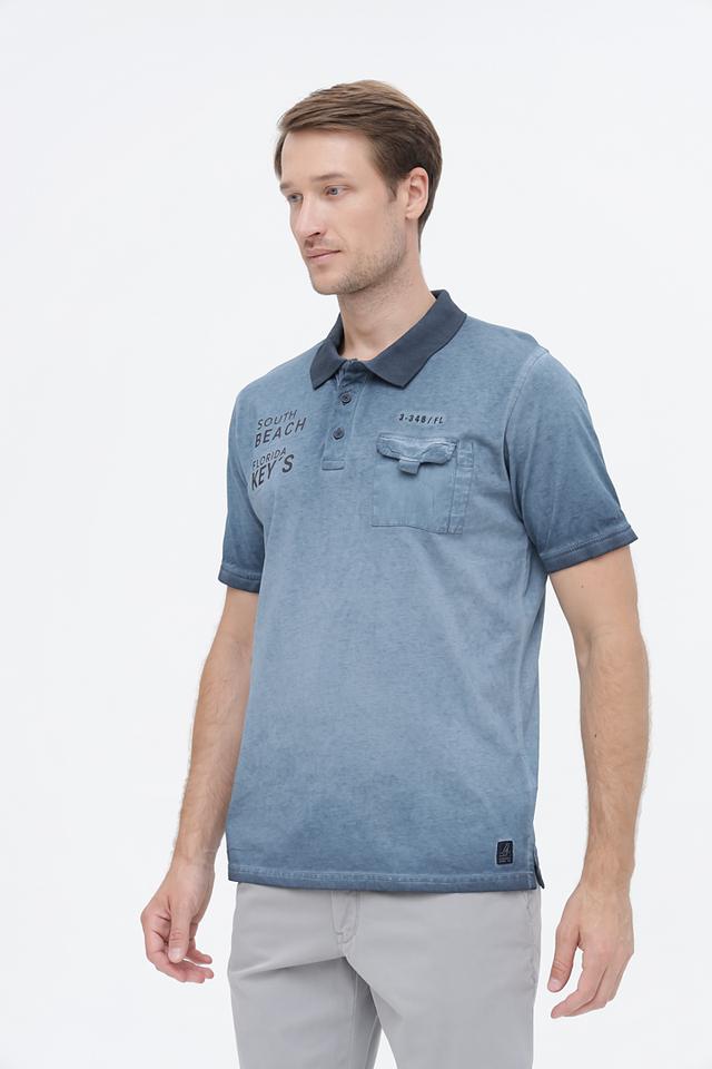 Голубое поло от Casa Moda с эффектным принтом и накладным карманом. Изготовлено из 100% хлопка, обеспечивающего комфорт и воздухопроницаемость. Стильное и удобное решение для повседневного образа. Состав: хлопок 100%