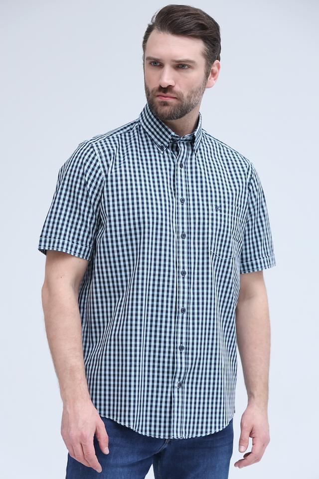 Мужская рубашка Casa Moda синего цвета с коротким рукавом, выполнена в классической клетку. Изготовлена из 100% хлопка, обеспечивающего комфорт и воздухопроницаемость. Отличный выбор для повседневного образа. Состав: хлопок 100%