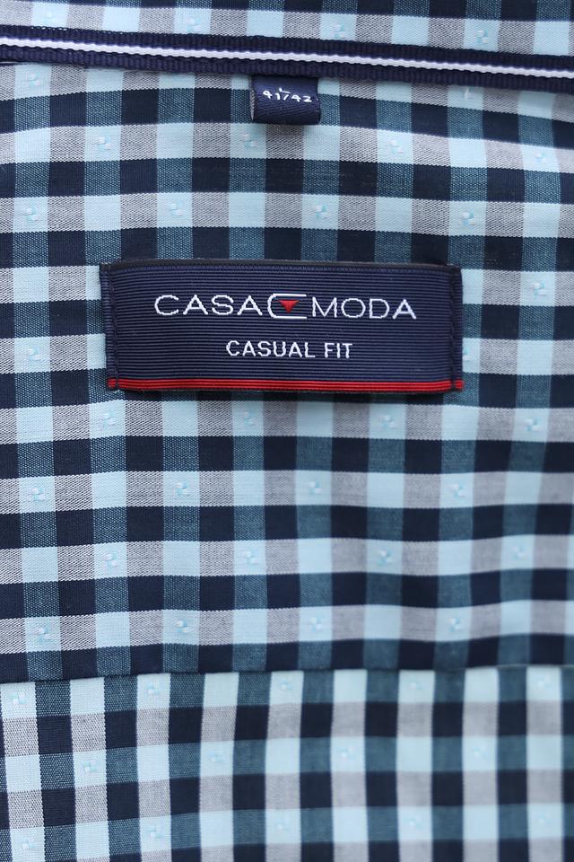 Особенностью данной модели является стильная клетка синего и белого цветов, которая делает рубашку универсальной и подходящей для различных случаев. Она легко сочетается с джинсами, брюками чинос или шортами, создавая непринужденный и современный образ. На этикетке указано Casual Fit.