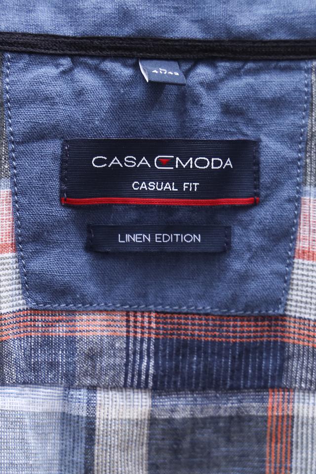 На левой стороне груди расположена небольшая фирменная вышивка Casa Moda. Рубашка идеально сочетается с шортами, брюками чинос или джинсами, создавая непринужденный и стильный образ.