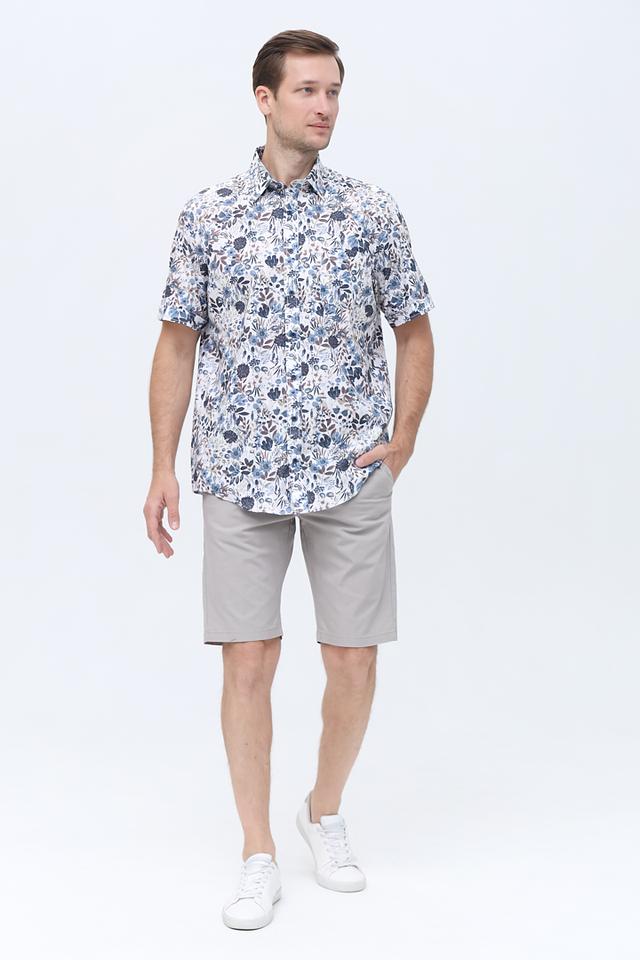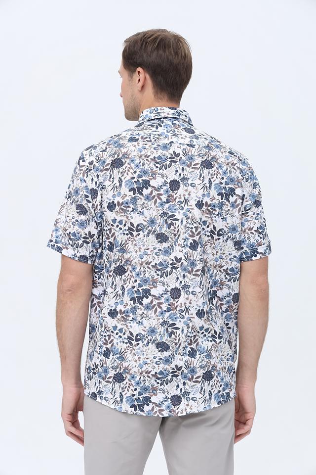 Мужская рубашка Casa Moda голубого цвета с коротким рукавом и ярким цветочным принтом. Изготовлена из 100% хлопка, обеспечивающего комфорт и воздухопроницаемость. Отличный выбор для создания стильного летнего образа. Состав: хлопок 100%