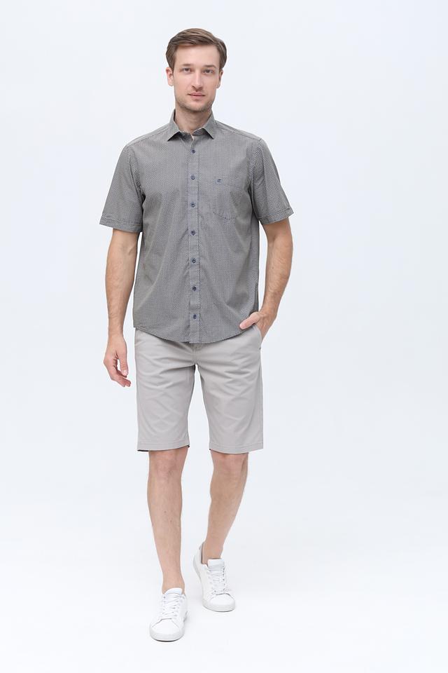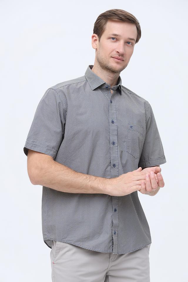 Мужская рубашка Casa Moda серого цвета с коротким рукавом, выполнена в мелкую клетку. Изготовлена из 100% хлопка, обеспечивающего комфорт и воздухопроницаемость. Состав: хлопок 100%