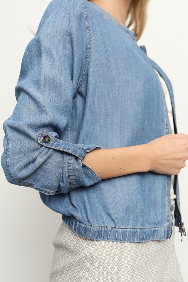 Жакет Catnoir голубого цвета – стильная модель из 100% лиоцела с застежкой на молнию. Укороченный крой и рукава 3/4 делают жакет универсальным дополнением к образу. Идеально сочетается с джинсами и брюками. Состав: лиоцел 100%