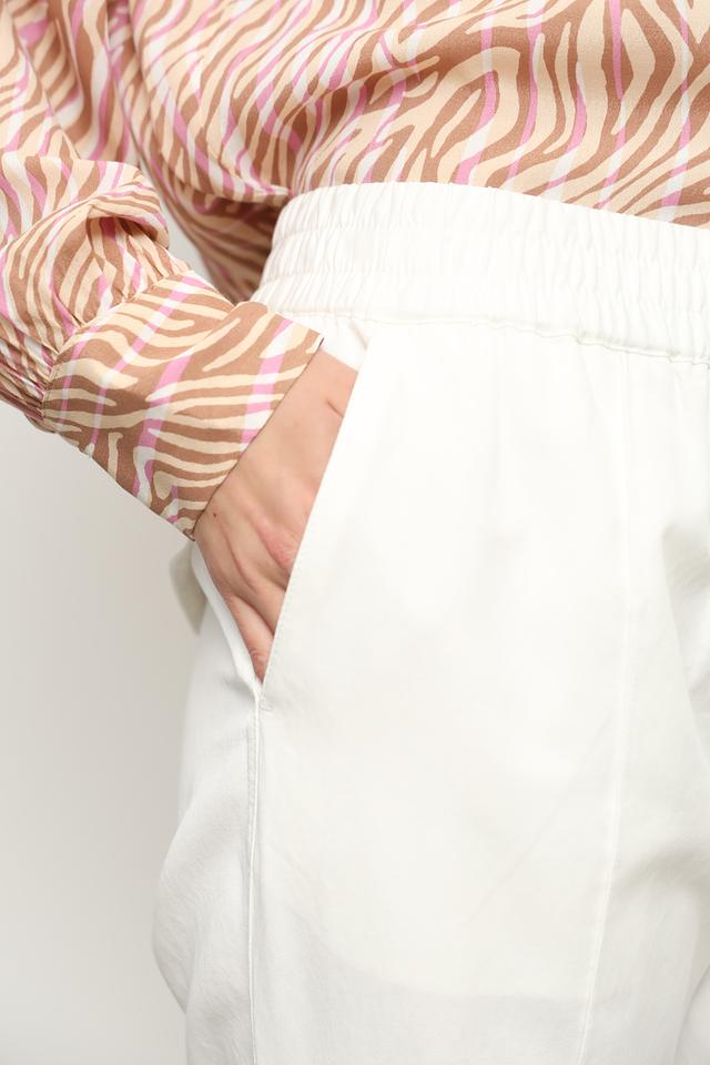 Благодаря своему лаконичному дизайну и нейтральному молочному цвету, эти брюки легко сочетаются с различными элементами одежды, позволяя создавать разнообразные образы — от повседневных до более элегантных. Они прекрасно подойдут для работы, прогулок и встреч с друзьями.