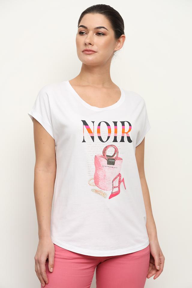 Белая футболка Catnoir с ярким принтом "Noir" — стильная и комфортная модель из хлопка и модала. Футболка имеет свободный крой и короткие рукава, идеально подходит для создания повседневных образов. Состав: хлопок 50%, модал 50%