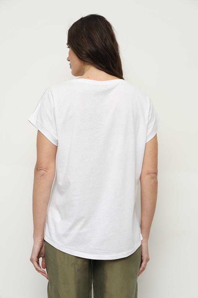 Модель имеет прямой крой, короткие рукава с небольшим подворотом и округлый вырез горловины. Футболка выполнена из высококачественного материала – 50% хлопка и 50% модала, что обеспечивает комфорт, мягкость и приятные ощущения при носке.