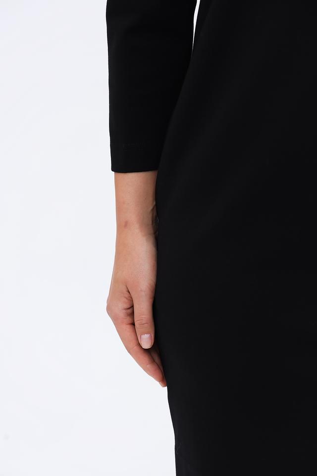 Чёрное платье Catnoir – это элегантная и универсальная модель с V-образным вырезом и рукавами 3/4. Идеально подходит для создания как повседневных, так и деловых образов. Платье выполнено из мягкой и приятной к телу ткани. Состав: вискоза 62%, нейлон 33%, спандекс 5%