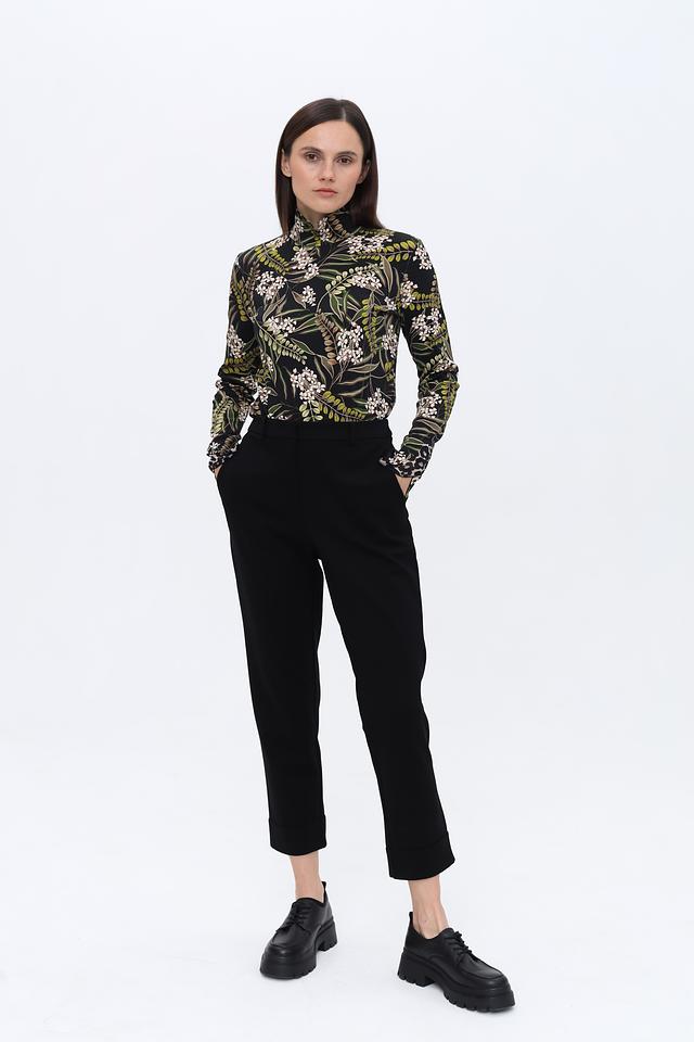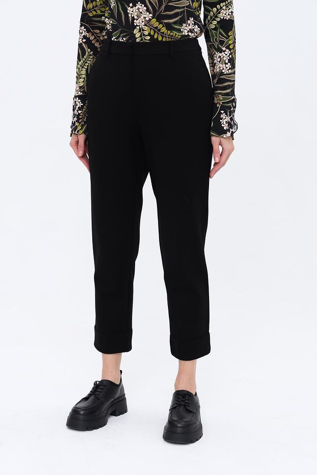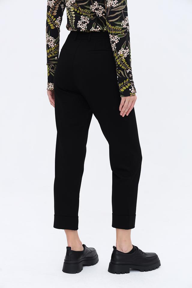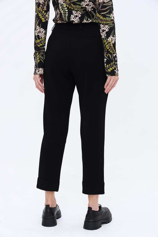 Благодаря составу ткани, брюки приятны к телу, хорошо держат форму и не мнутся. Они идеально подойдут для создания как деловых, так и повседневных образов. Завершённый вид брюкам придают аккуратные манжеты внизу штанин.