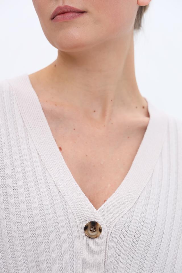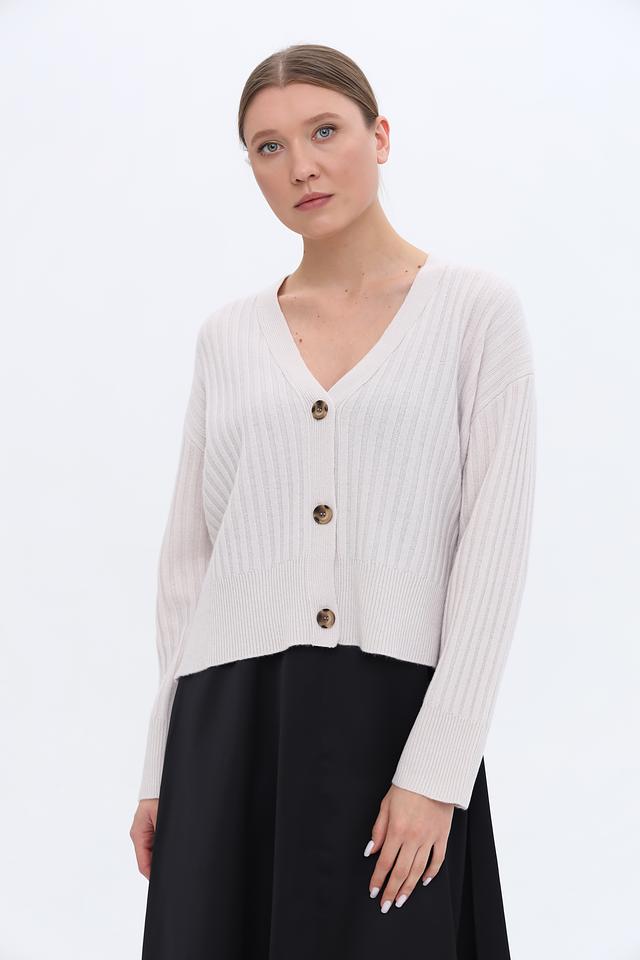 Благодаря нейтральному бежевому цвету, этот кардиган легко интегрируется в любой гардероб и станет незаменимой вещью в прохладное время года. Он идеально подходит для создания как повседневных, так и более элегантных образов.