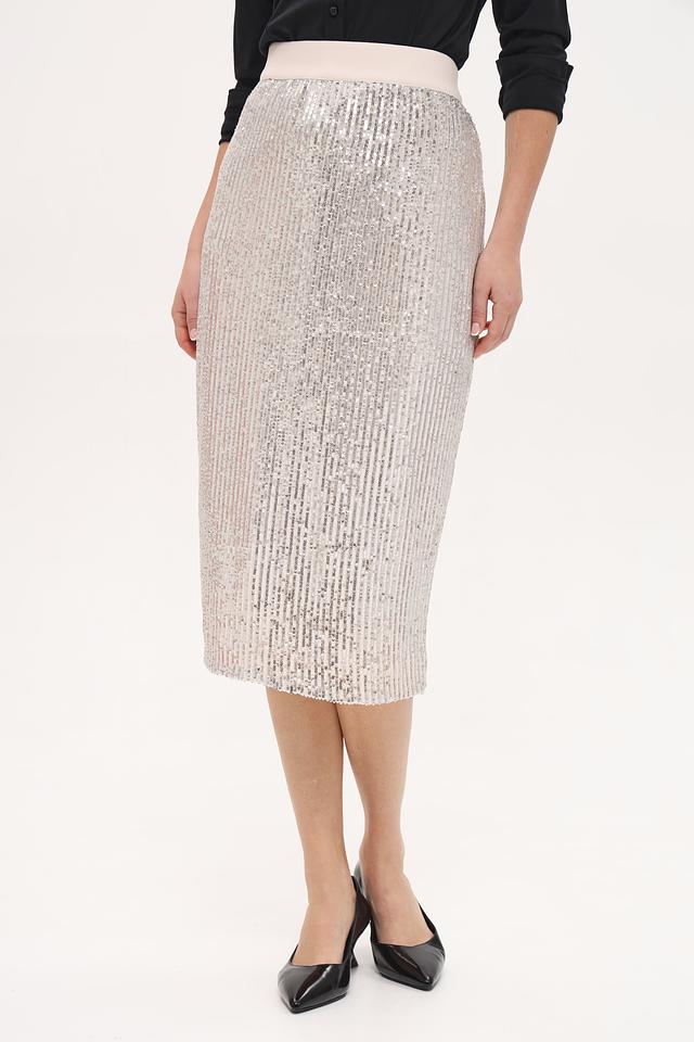 Юбка Catnoir серебристого цвета, выполненная с отделкой из пайеток, станет ярким акцентом вашего образа. Приталенный силуэт и длина миди подчеркнут фигуру и добавят элегантности. Состав: полиэстер 95%, спандекс 5%