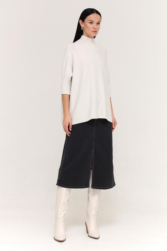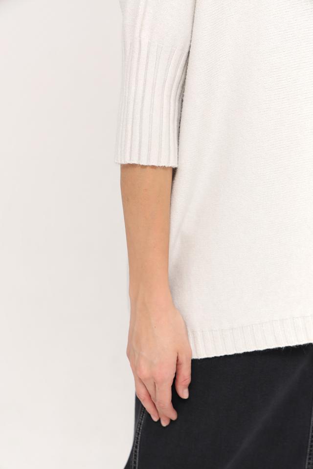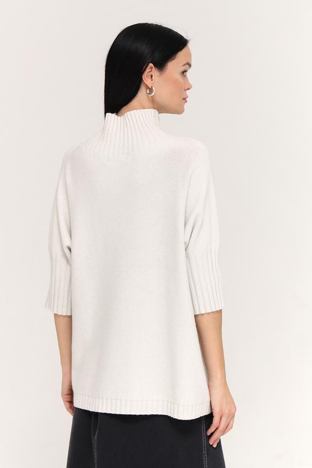 Пуловер имеет короткий рукав и высокий горловину, что делает его универсальным для различных образов. Он прекрасно сочетается с юбками, брюками и джинсами.