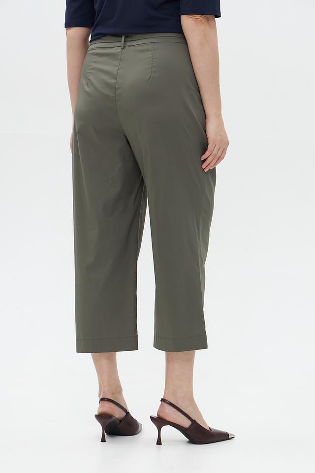 Женские брюки Catnoir цвета хаки – стильная модель кюлотов с завышенной талией и поясом-завязкой. Брюки выполнены из плотной ткани, обеспечивающей комфорт и элегантный силуэт. Состав: хлопок 74%, нейлон 23%, спандекс 3%