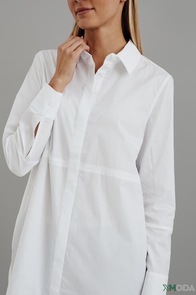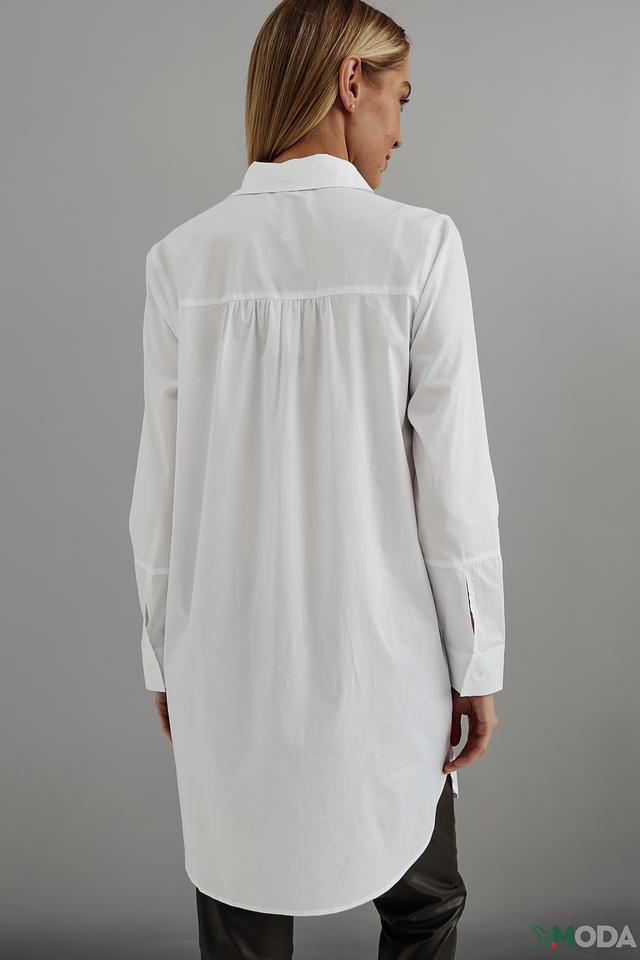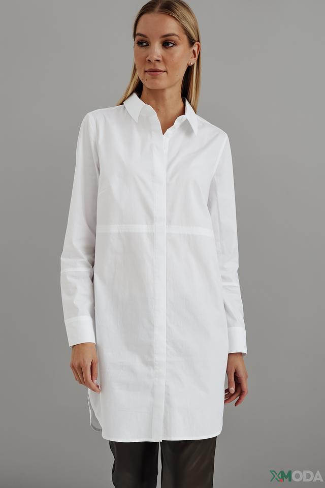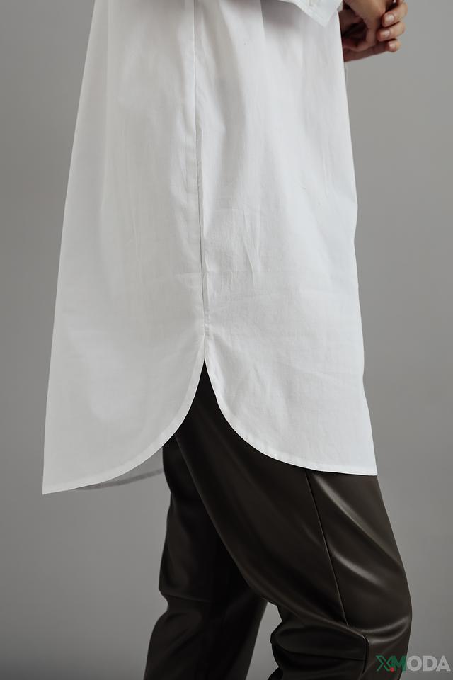 Особенностью данной модели является удлиненный силуэт и небольшие разрезы по бокам, которые добавляют динамики и оригинальности. Рубашку можно носить как самостоятельный элемент одежды, так и в сочетании с другими вещами, например, с джинсами, брюками или юбками.