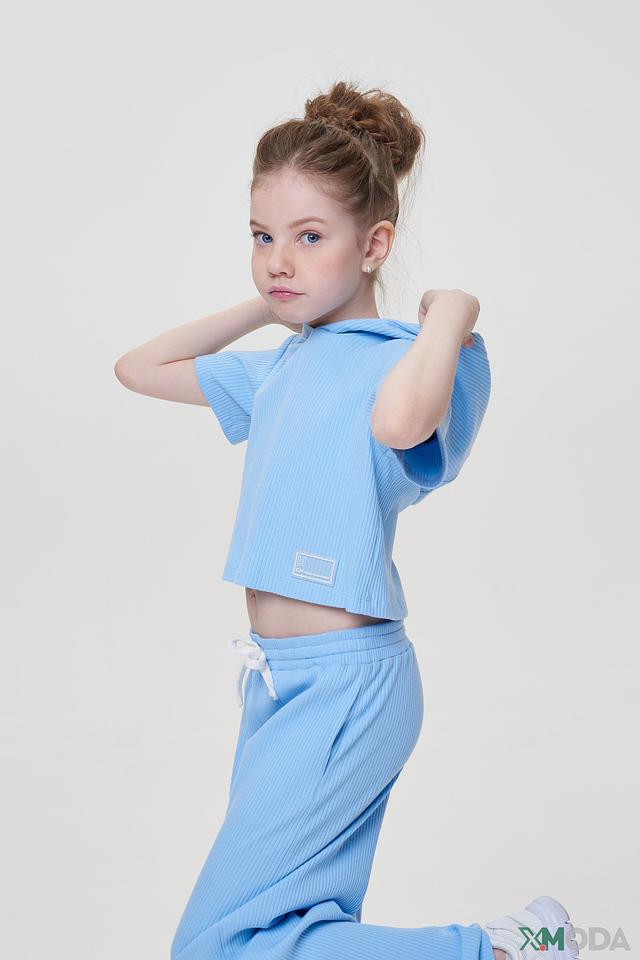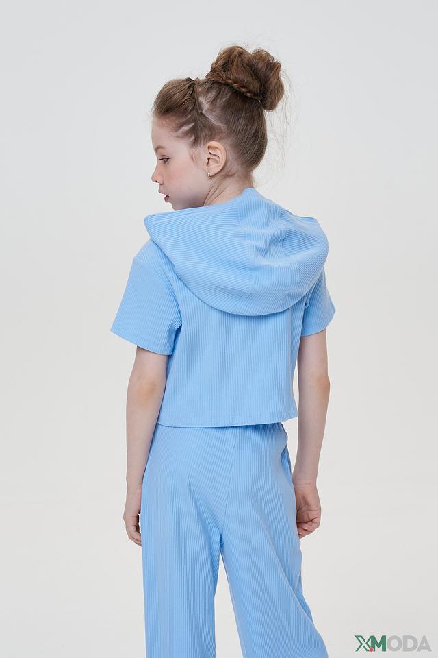 Блуза имеет короткий рукав и удобный капюшон, который защитит от ветра и солнца. Голубой цвет и лаконичный дизайн делают ее универсальной и подходящей для различных случаев – от прогулок до детских праздников.