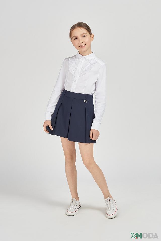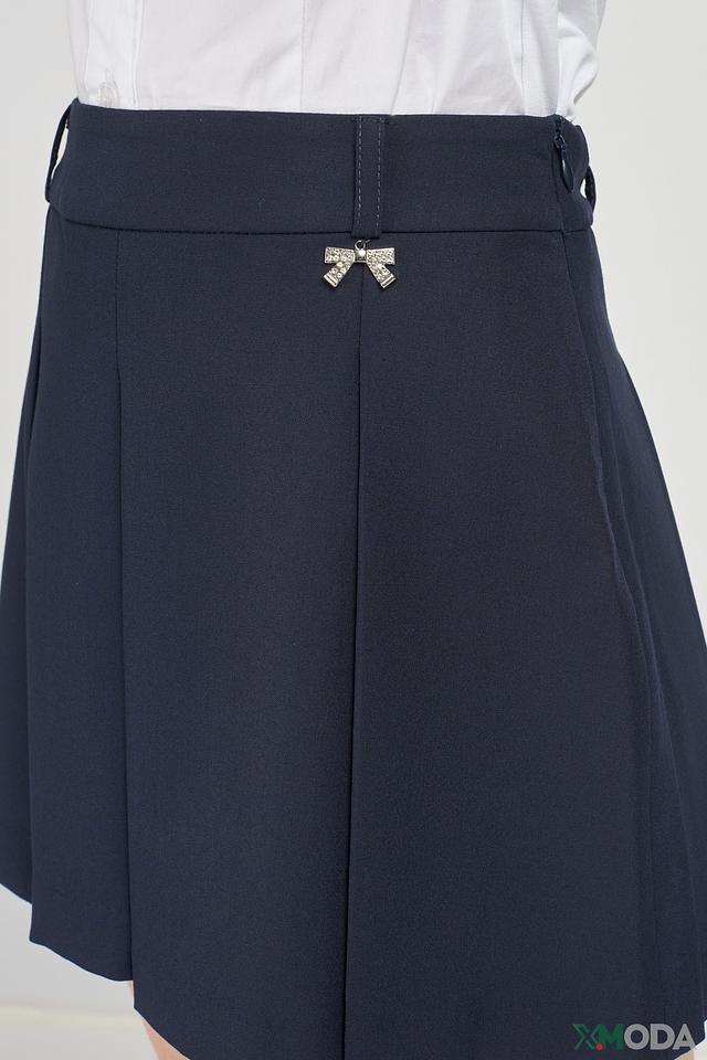 Юбка имеет плиссированную форму, которая придает ей лёгкость и воздушность. На талии расположена декоративная брошь в виде бантика, добавляющая юбке изысканности и привлекательности.
